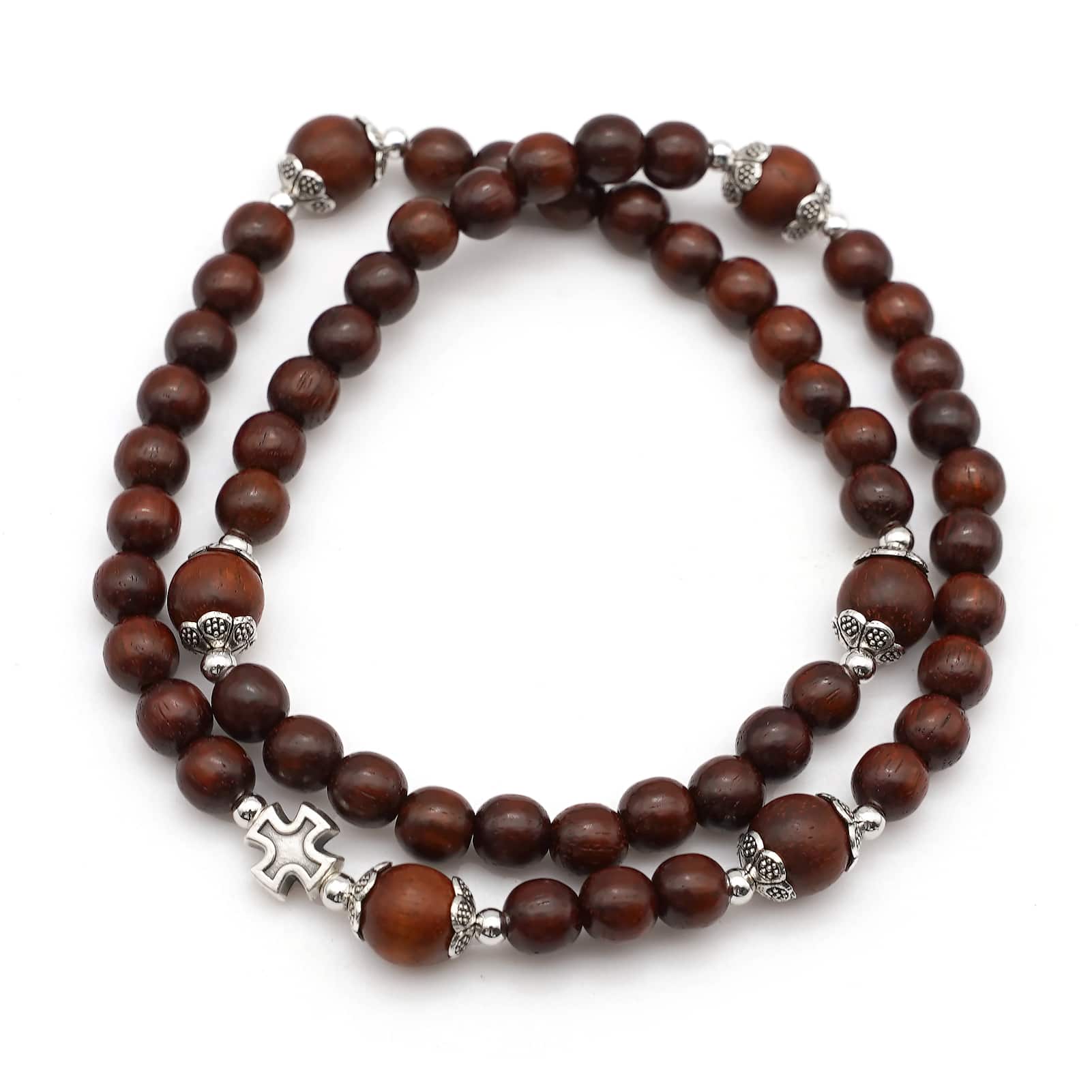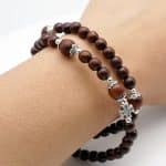 Handmade Miraculous Small Leaf Rosewood two Loop Stretch Bracelet from Italy. Made with high-quality rosewood, the bracelet features small leaf-shaped beads and two miraculous loops.