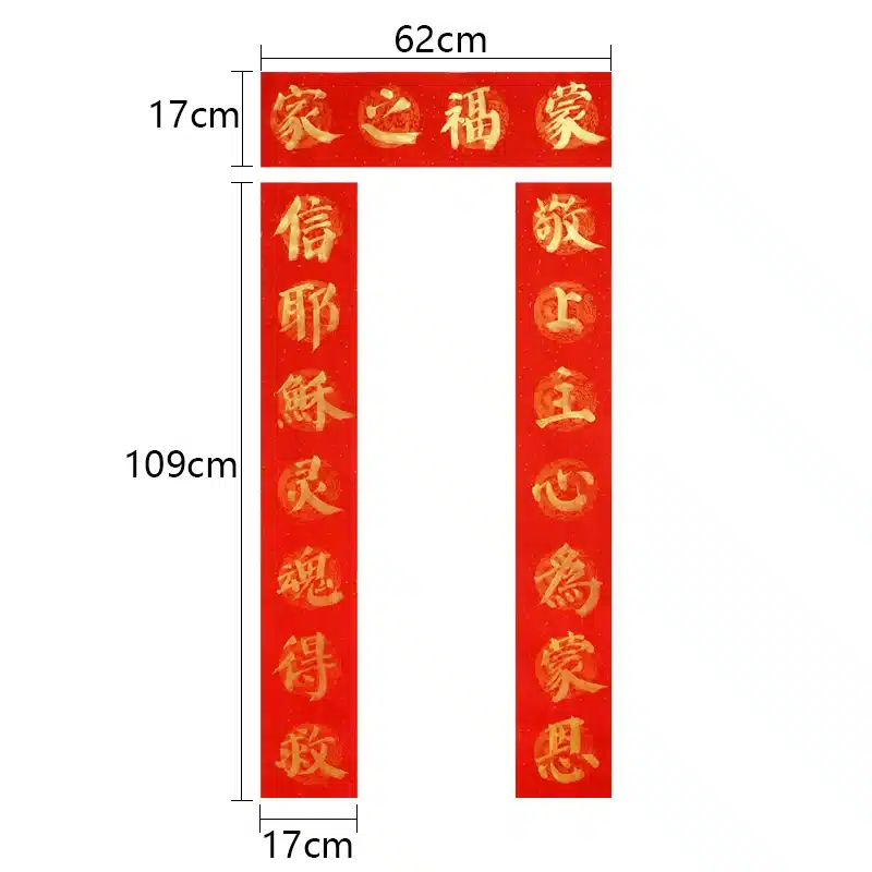 手写对联-小金 小号 尺寸 宽17长109厘米 金字送福字