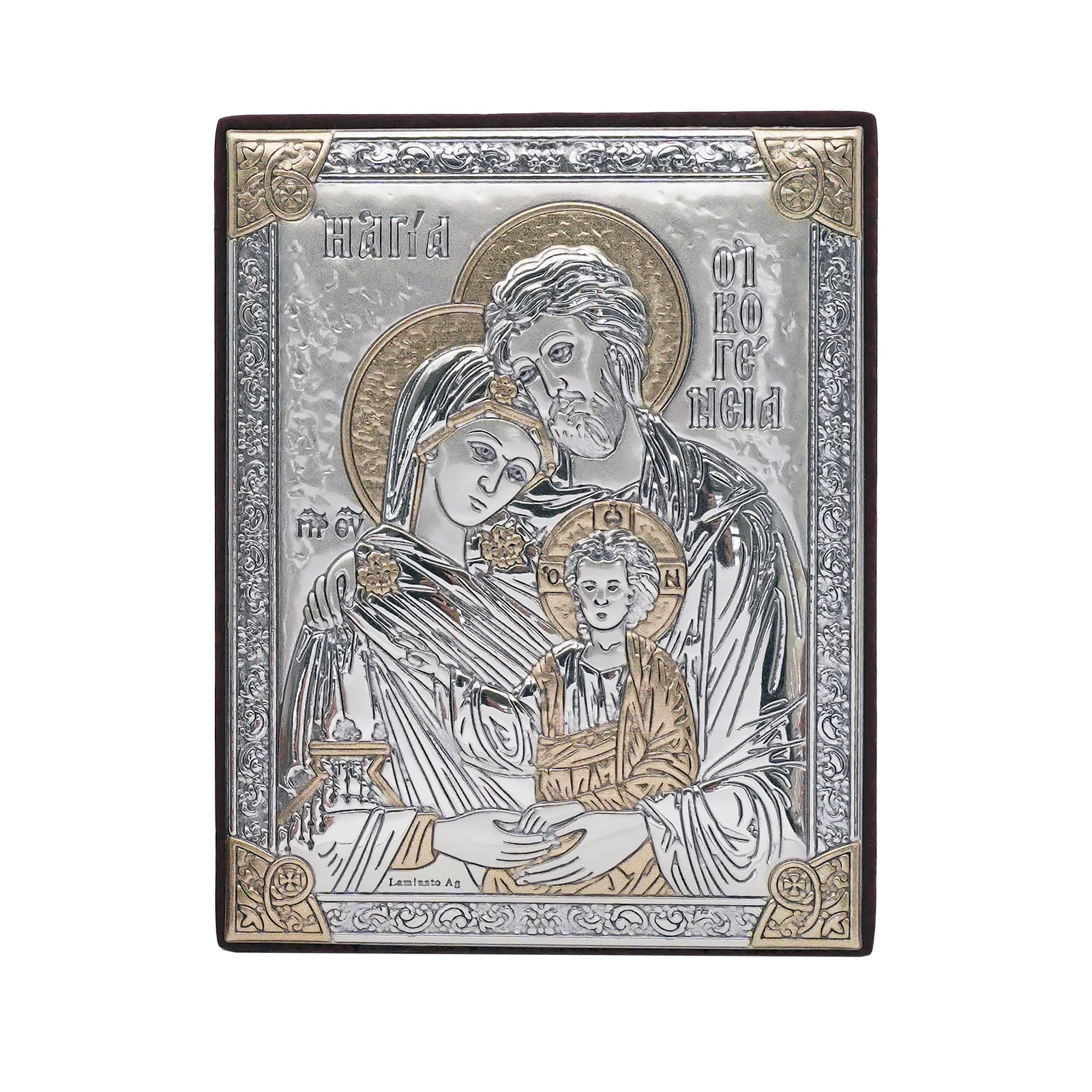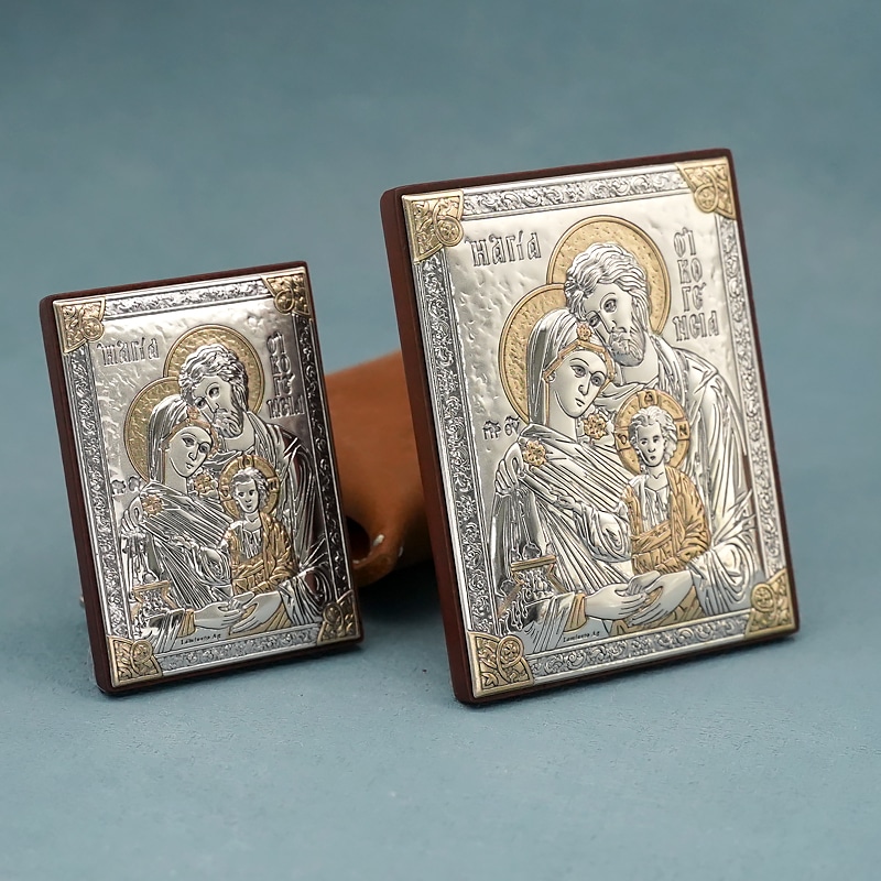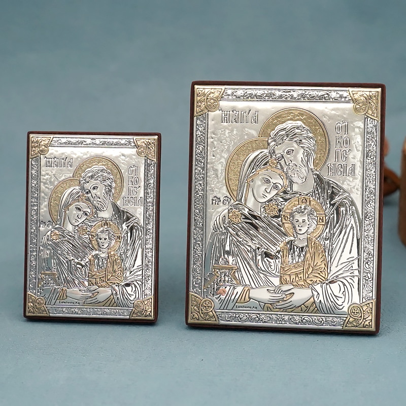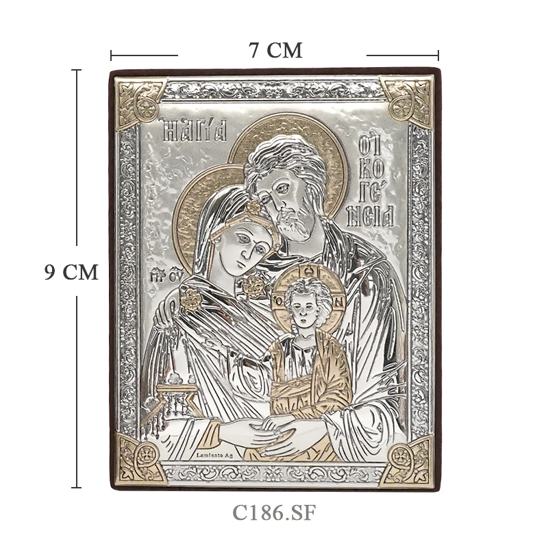 浮雕木板圣像 圣家 银金色 9×7 cm