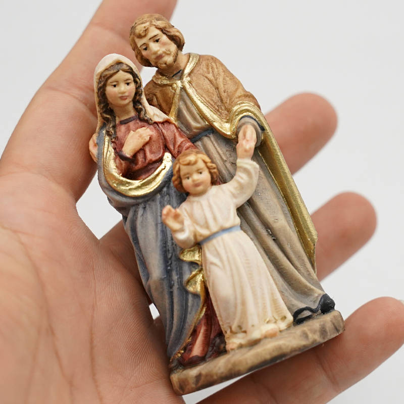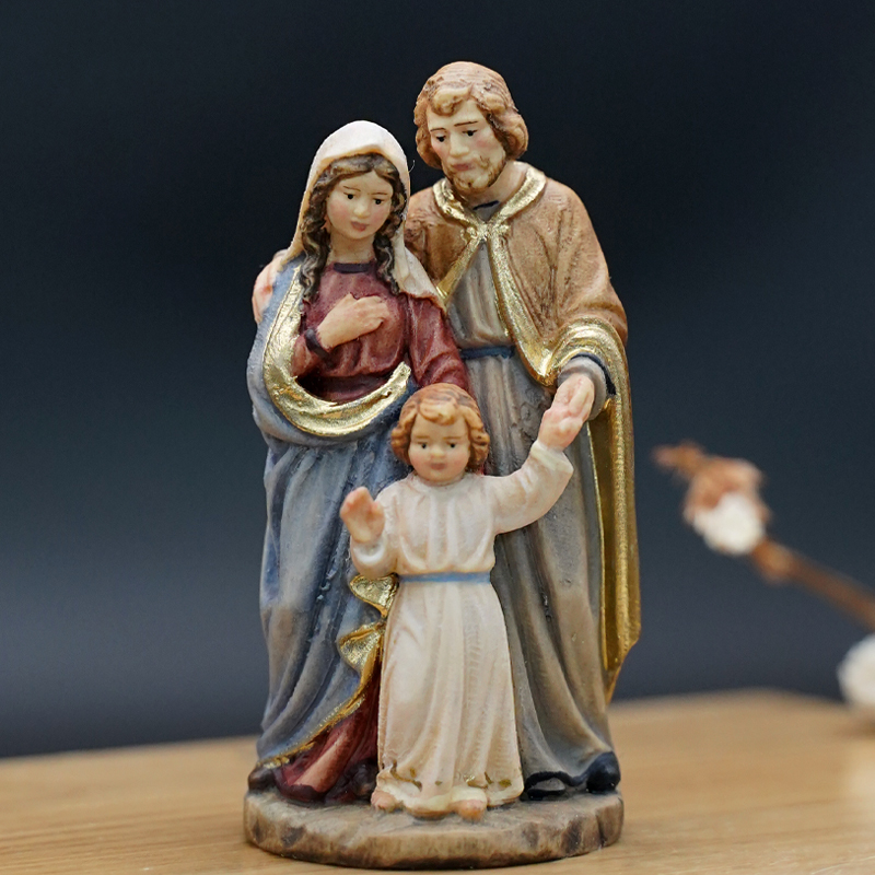 【现货】木雕 圣母圣若瑟和耶稣圣家摆件雕像_圣家(圣母 圣若瑟 耶稣)8 cm