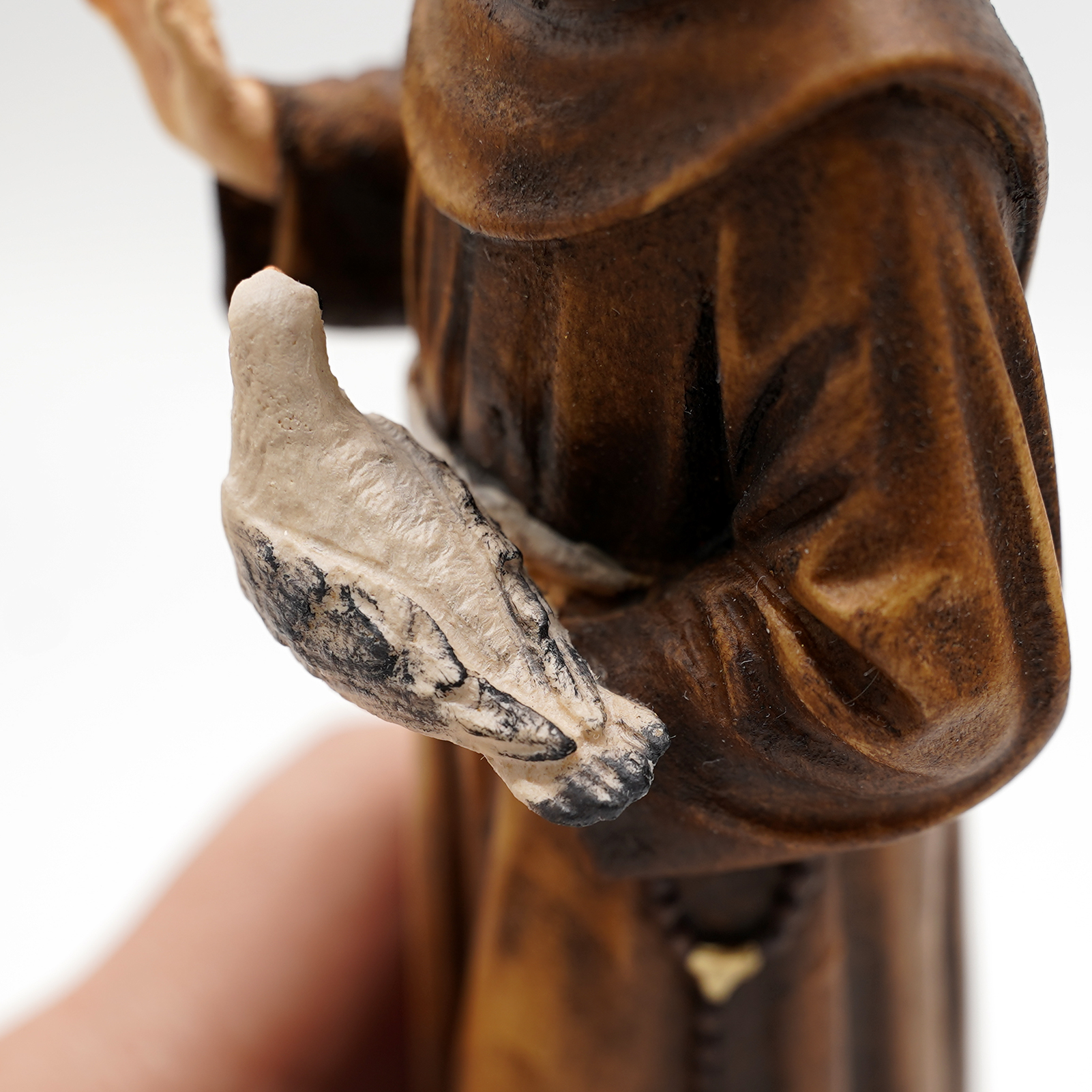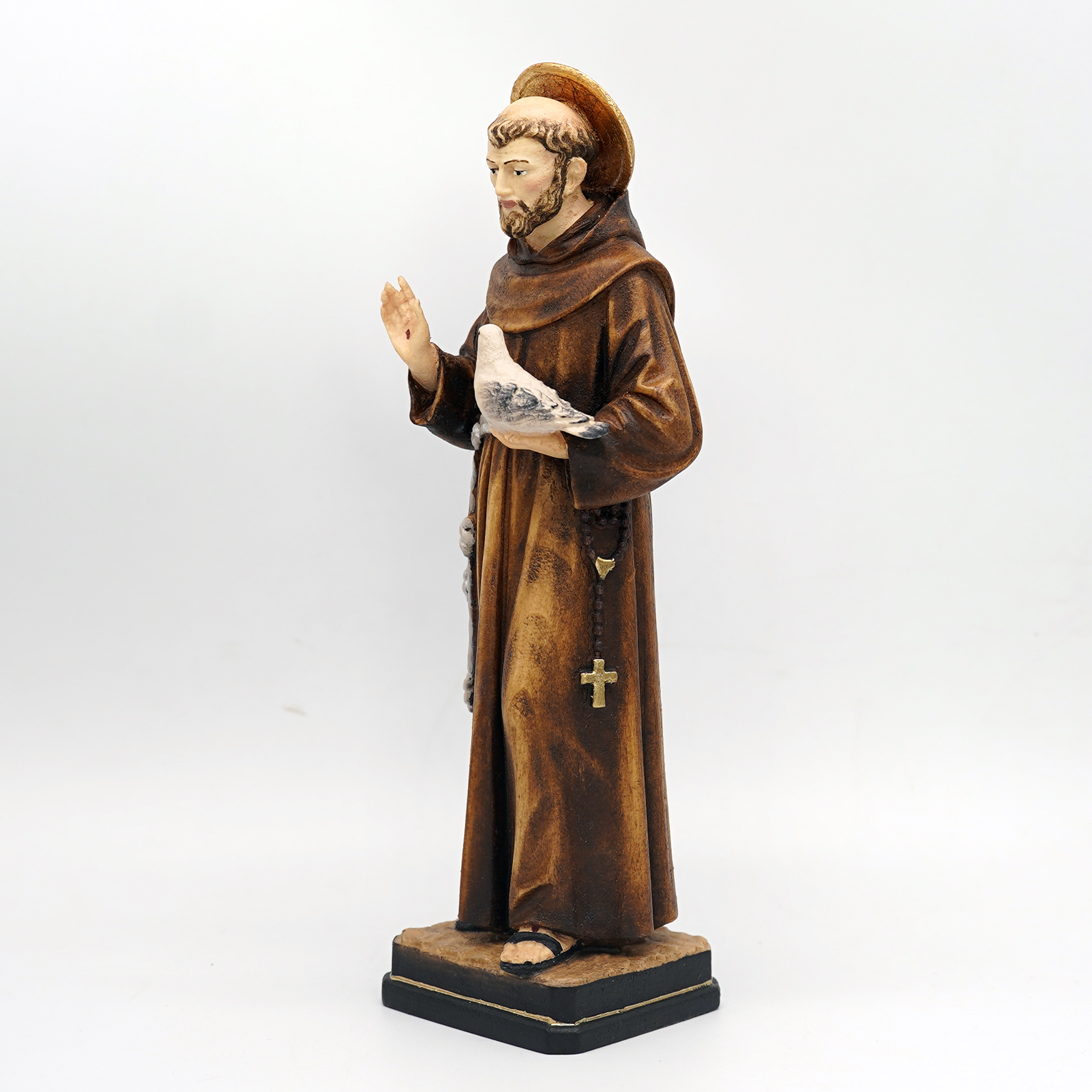 【现货】木雕-圣方济各与和平鸽木雕圣像-21厘米