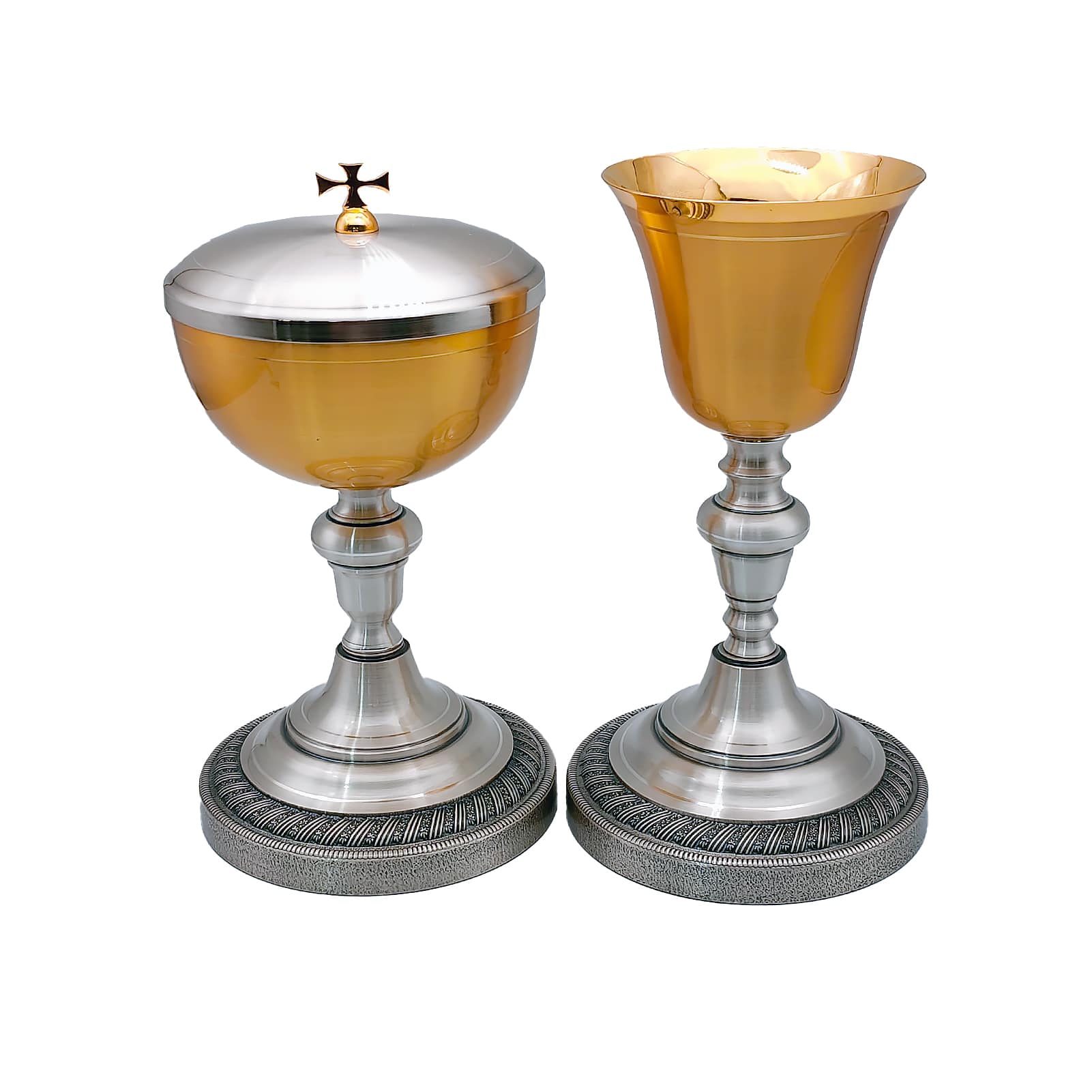 【现货】錾刻花纹底座-圣爵杯圣体盒套装19.5+19cm