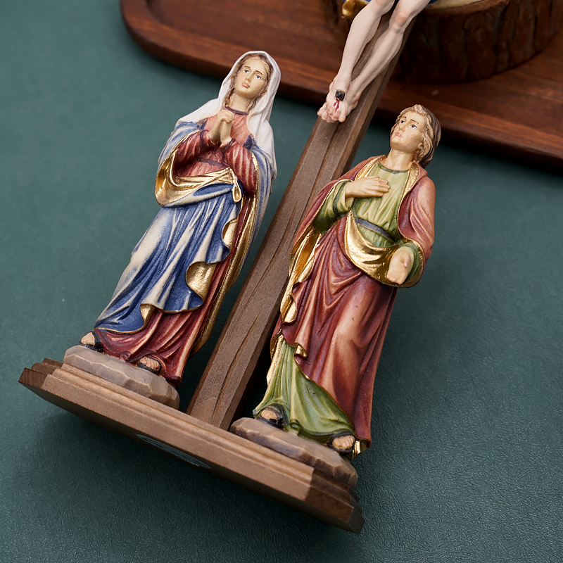 【现货】木雕 十字架与两位爱徒12/28cm