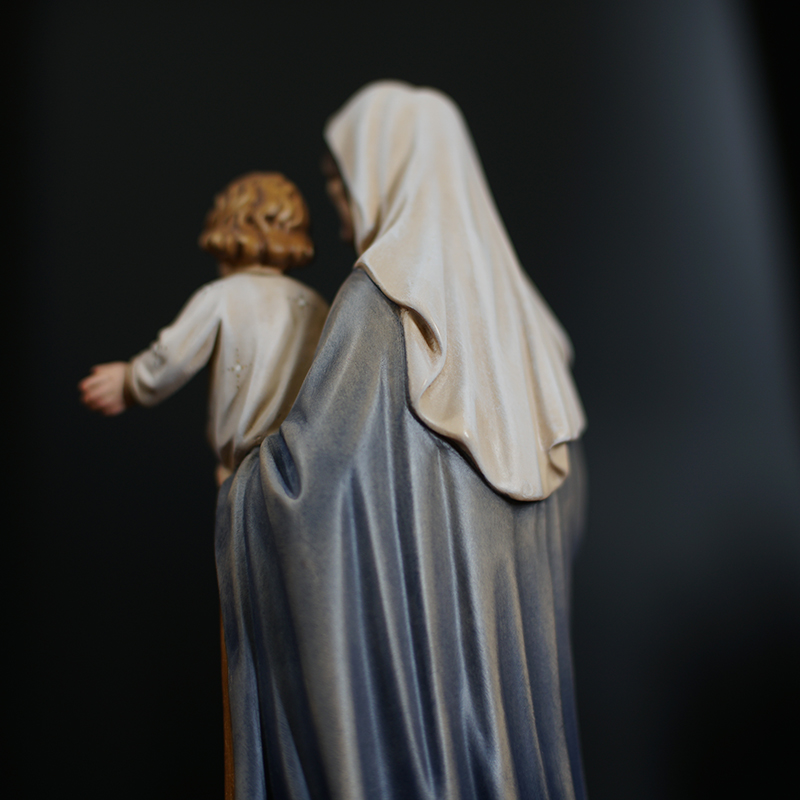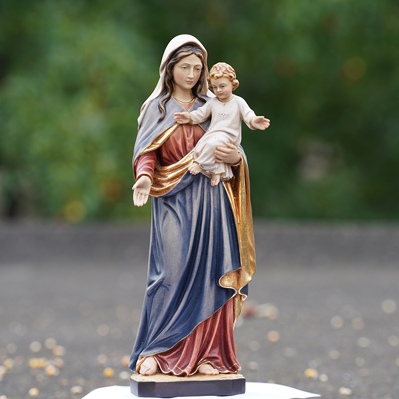 【现货】木雕 圣母抱耶稣手工木雕态像_34c 彩色