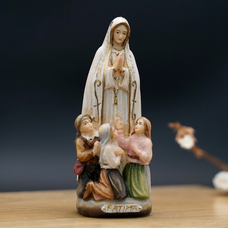 【现货】木雕_法蒂玛和三个小牧童8.5厘米彩色