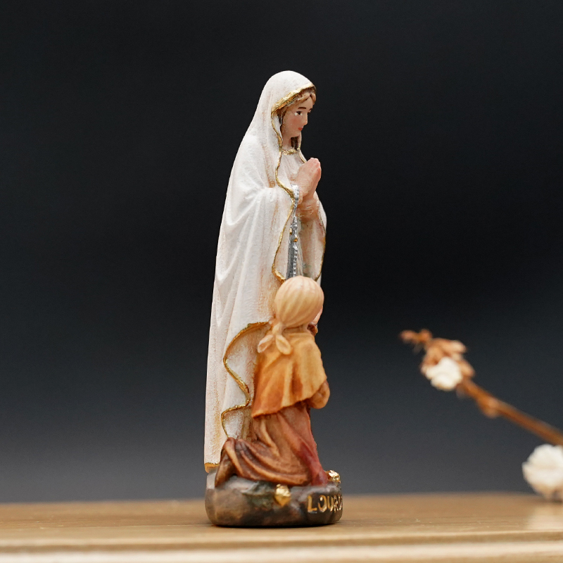 【现货】木雕_露德圣母和伯尔纳德8.5厘米彩色