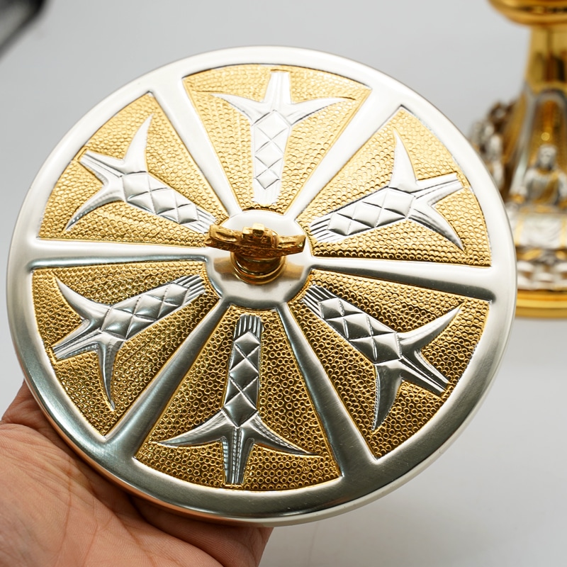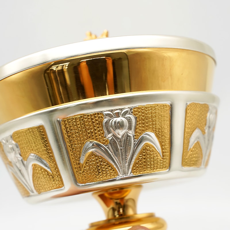 【现货】錾刻花纹底座-圣爵杯圣体盒套装19.5+19cm