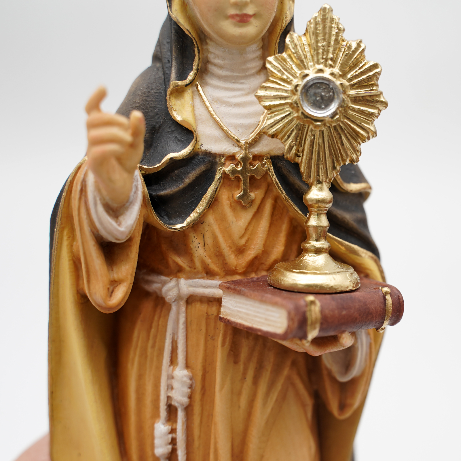【现货】木雕-圣女加辣亚西西手工态像-彩色-20厘米