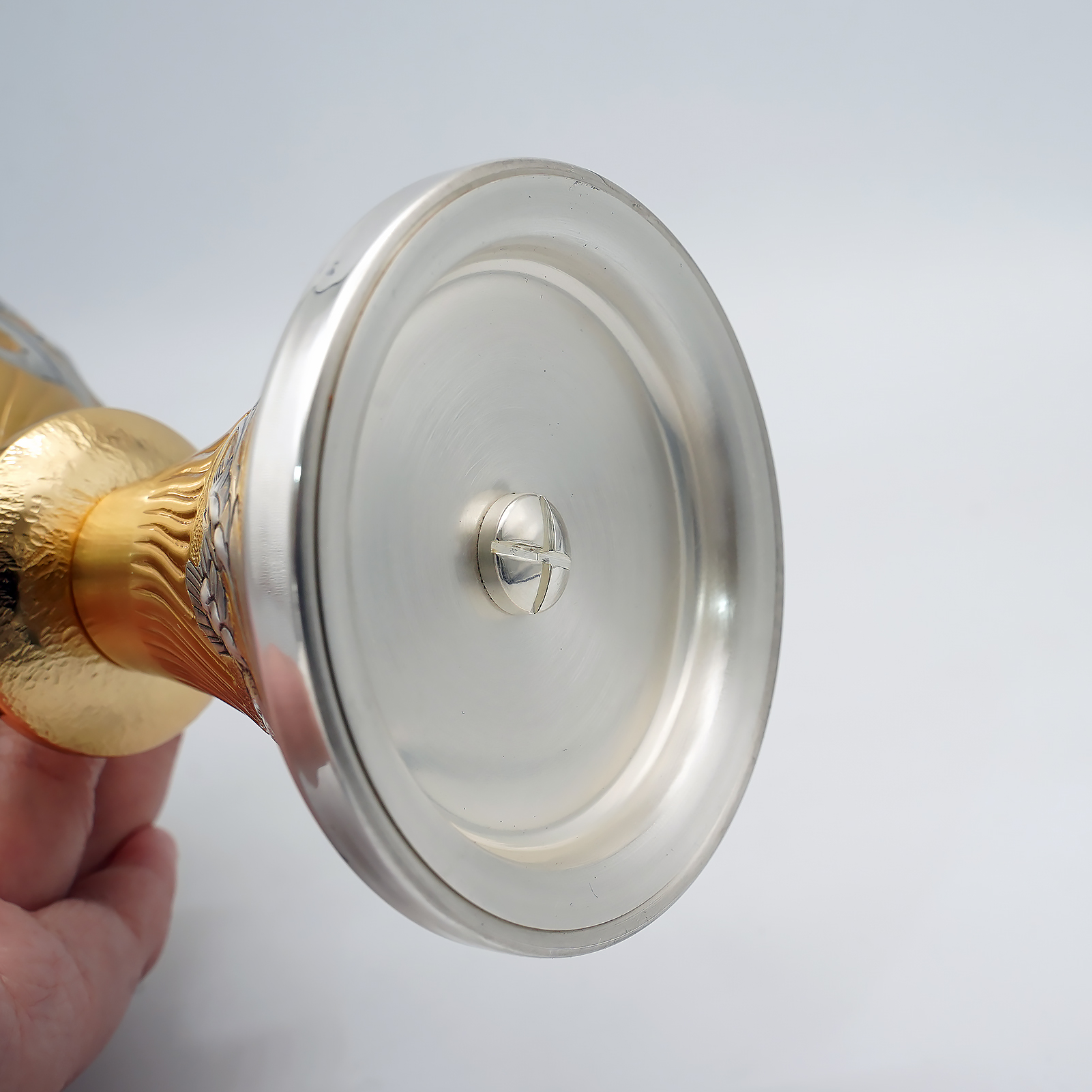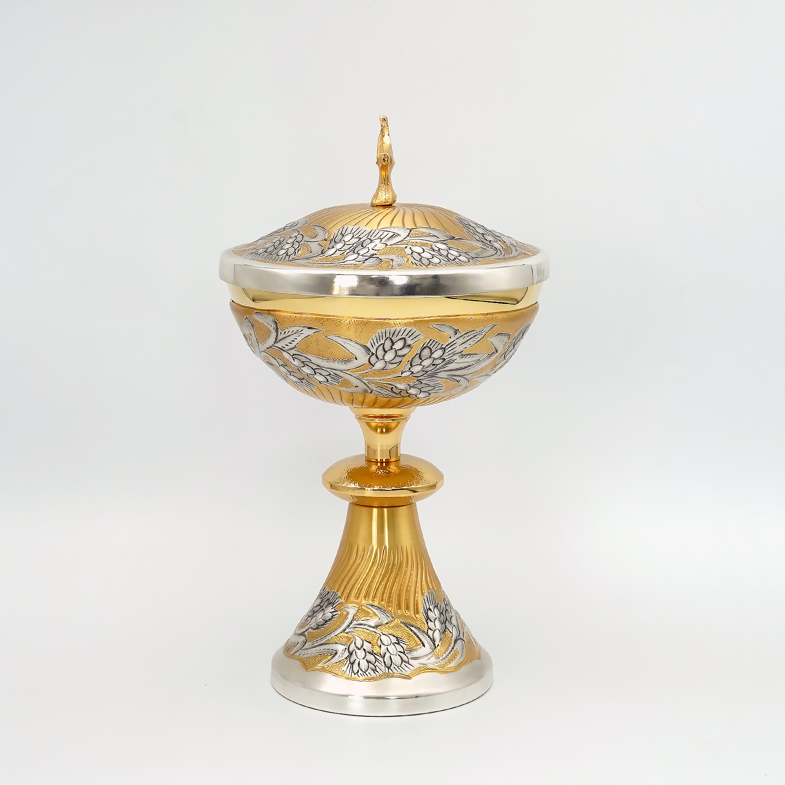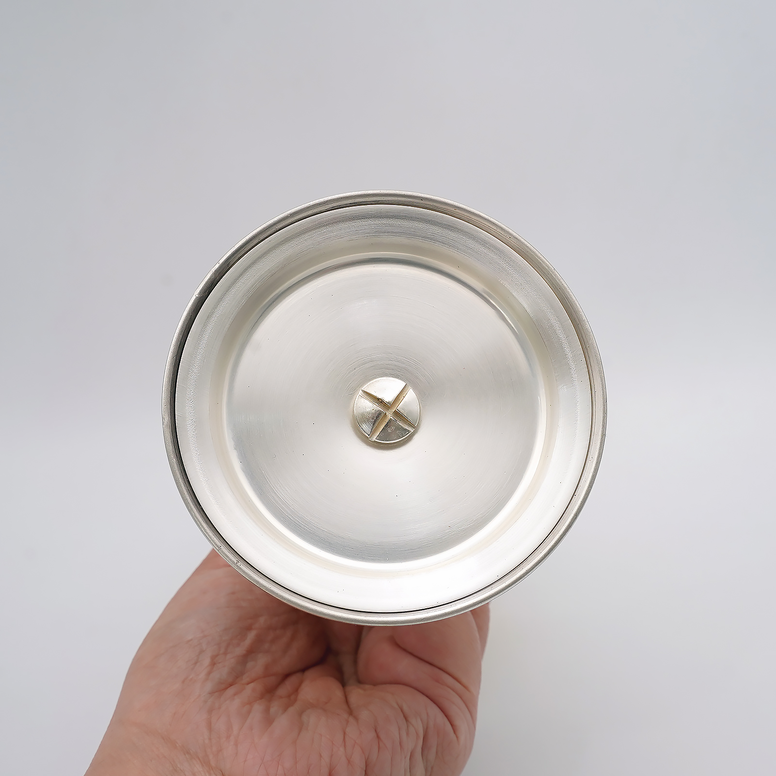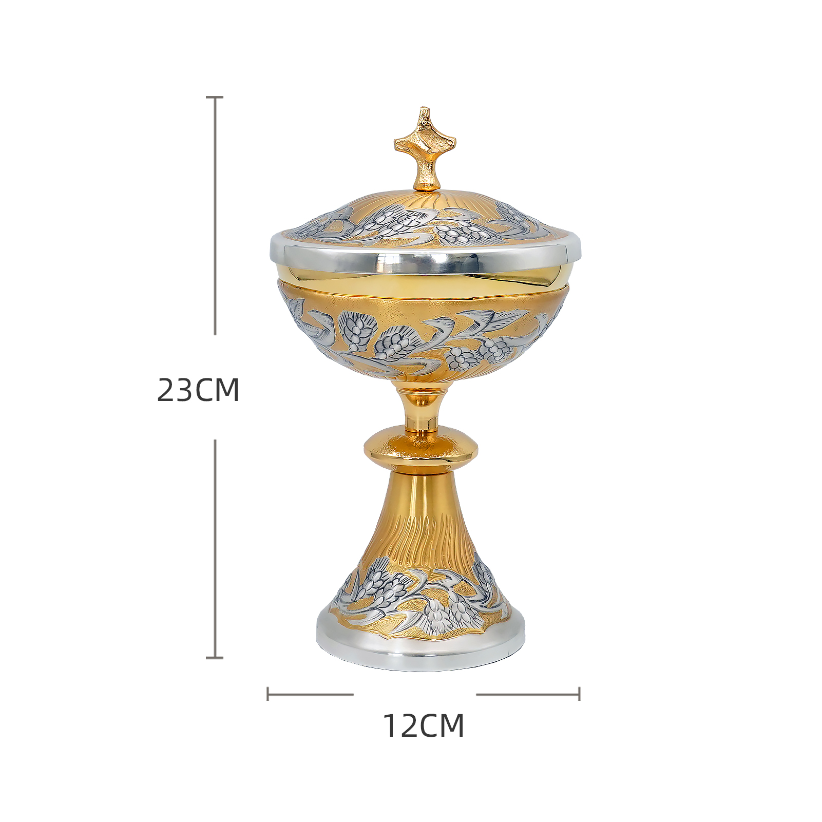 【现货】鱼与麦穗图案-手工雕刻-银色-圣爵杯圣体盒圣体碗带盖套装24+18+10.5cm