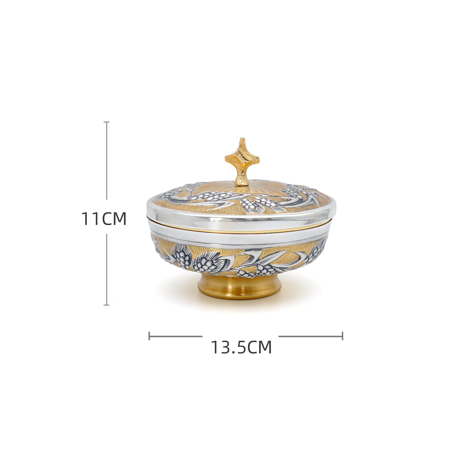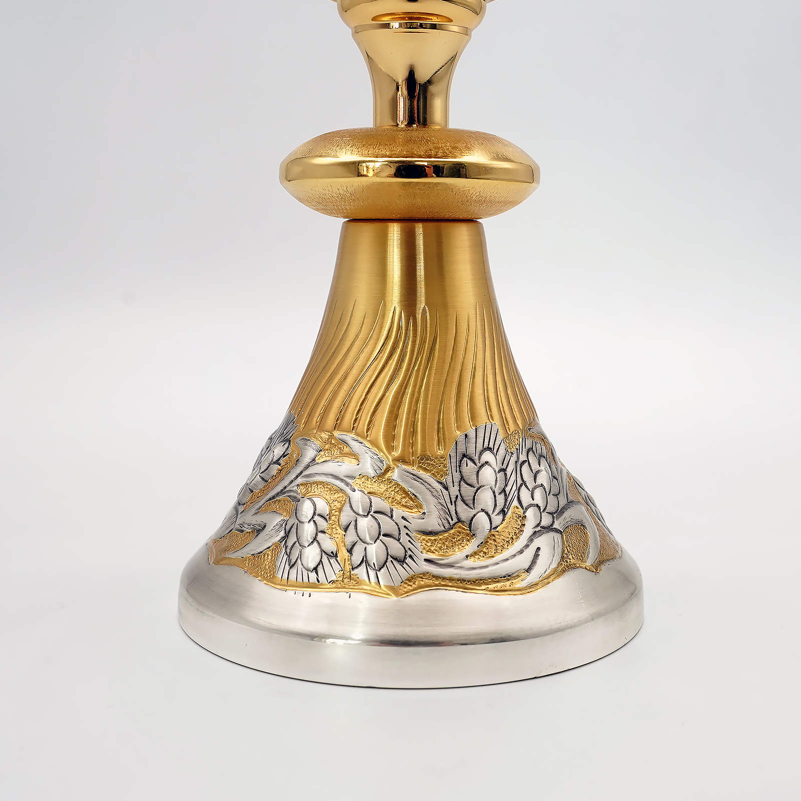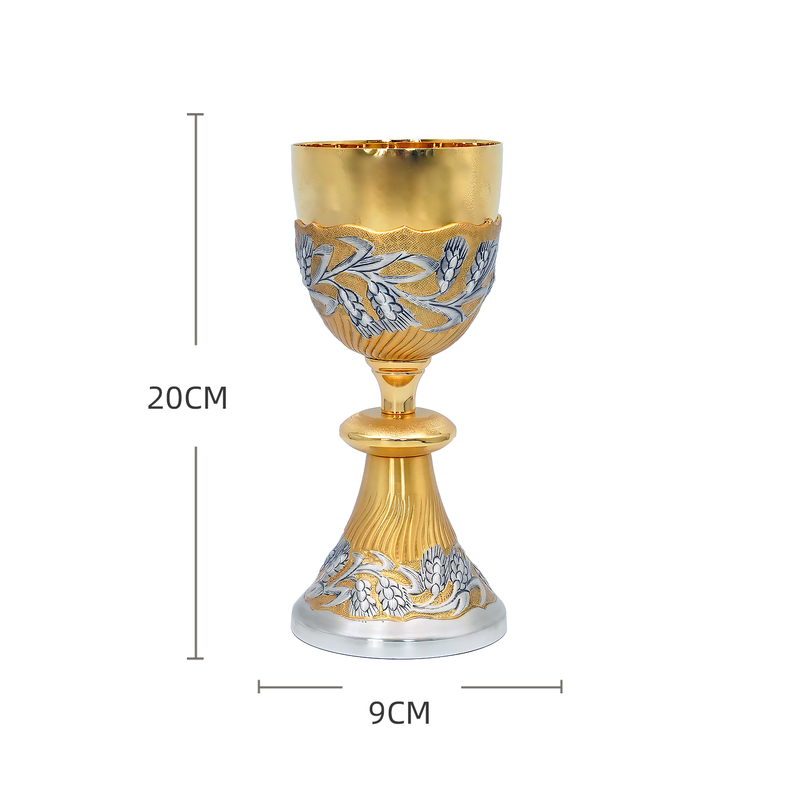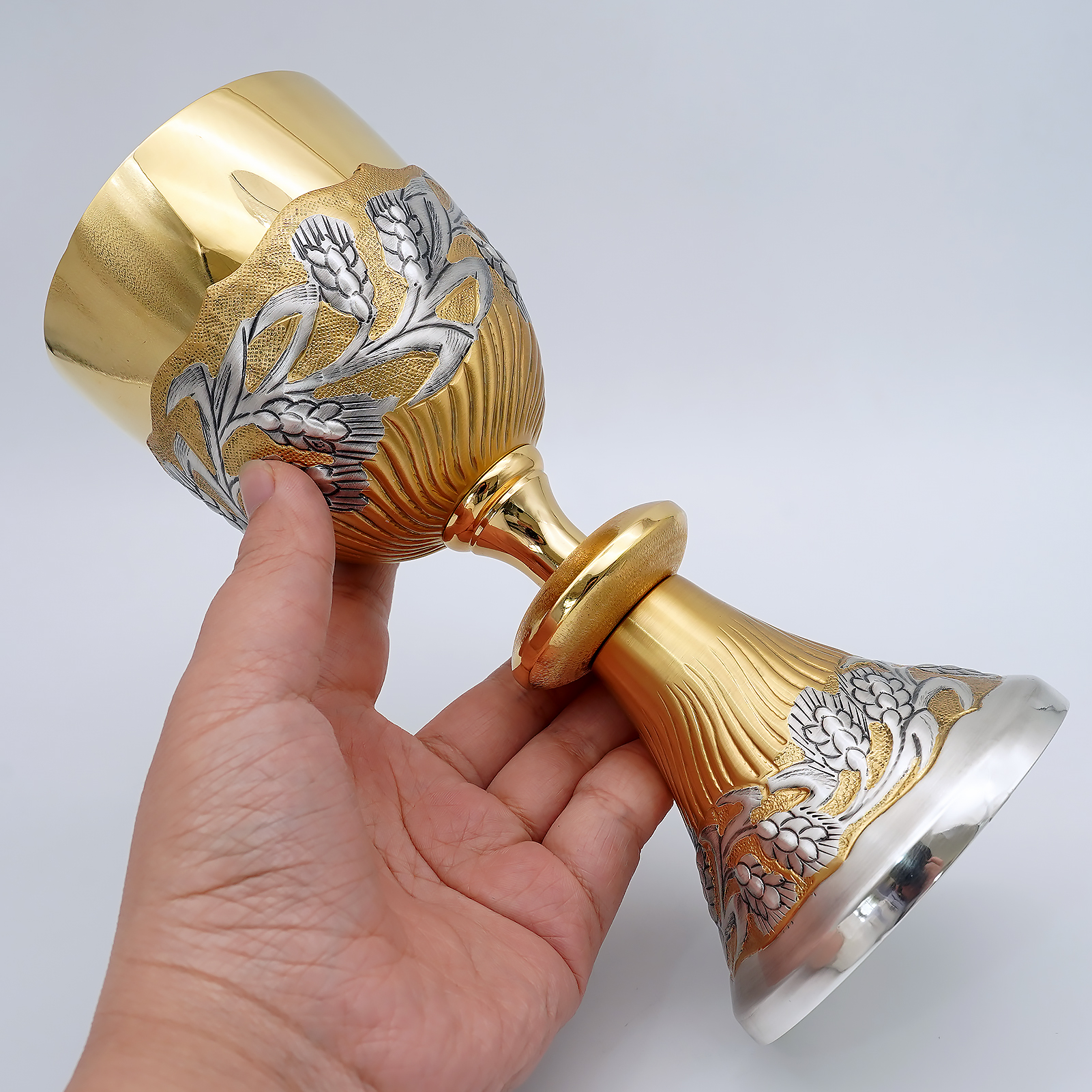 【现货】鱼与麦穗图案-手工雕刻-银色-圣爵杯圣体盒圣体碗带盖套装24+18+10.5cm