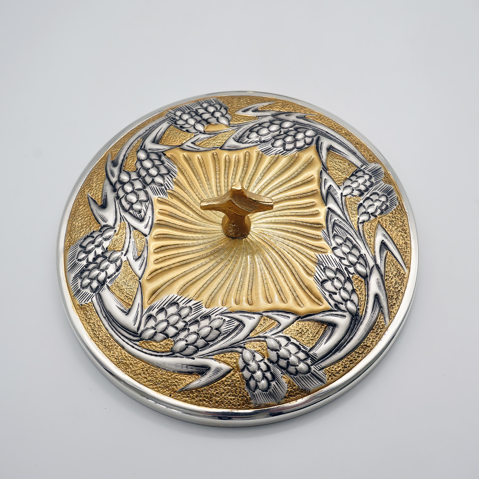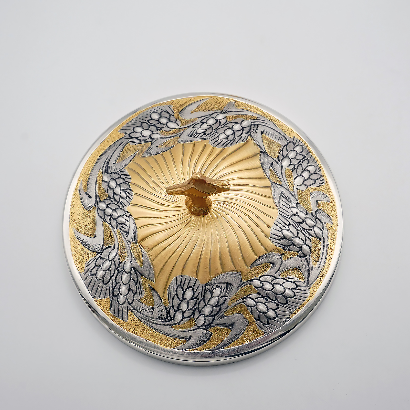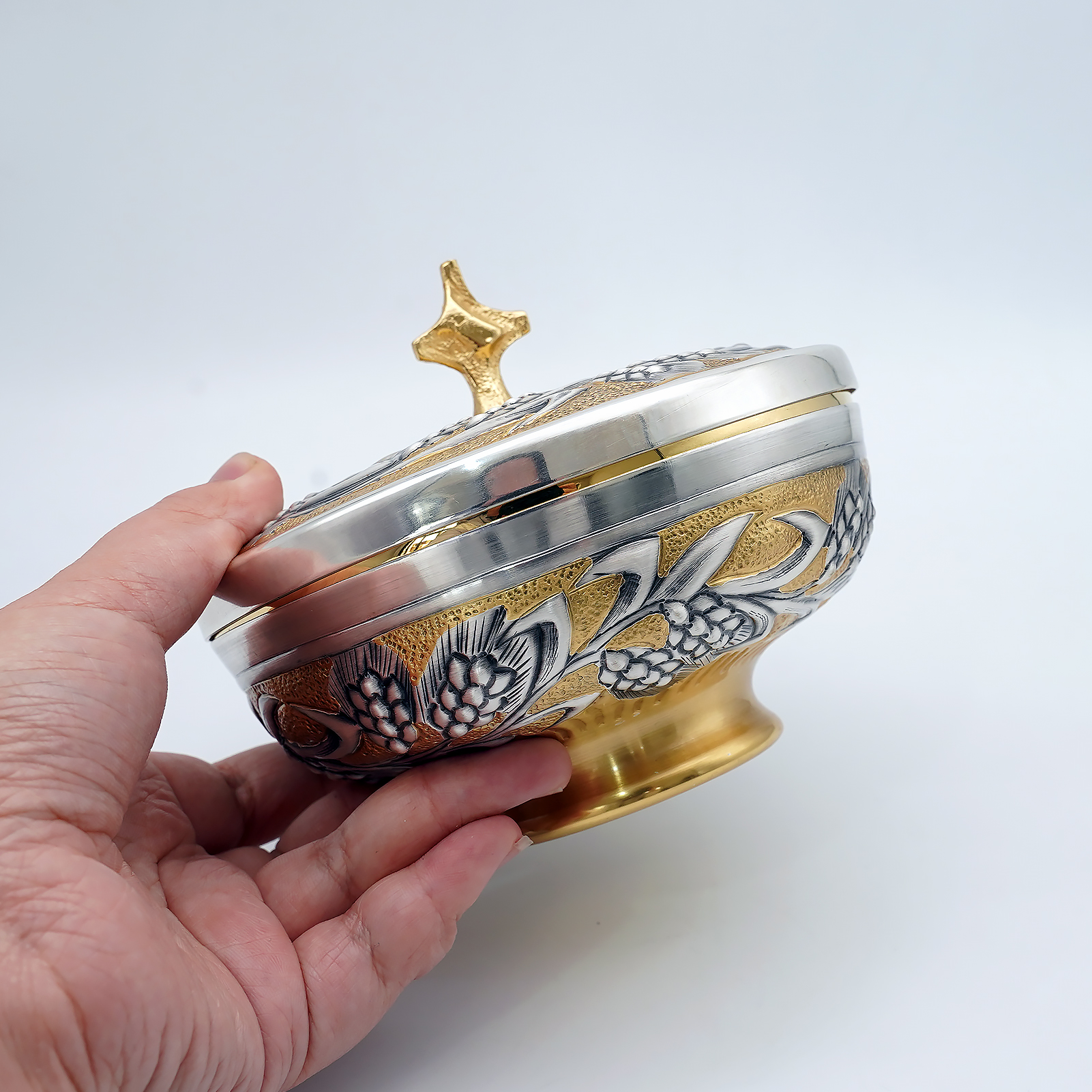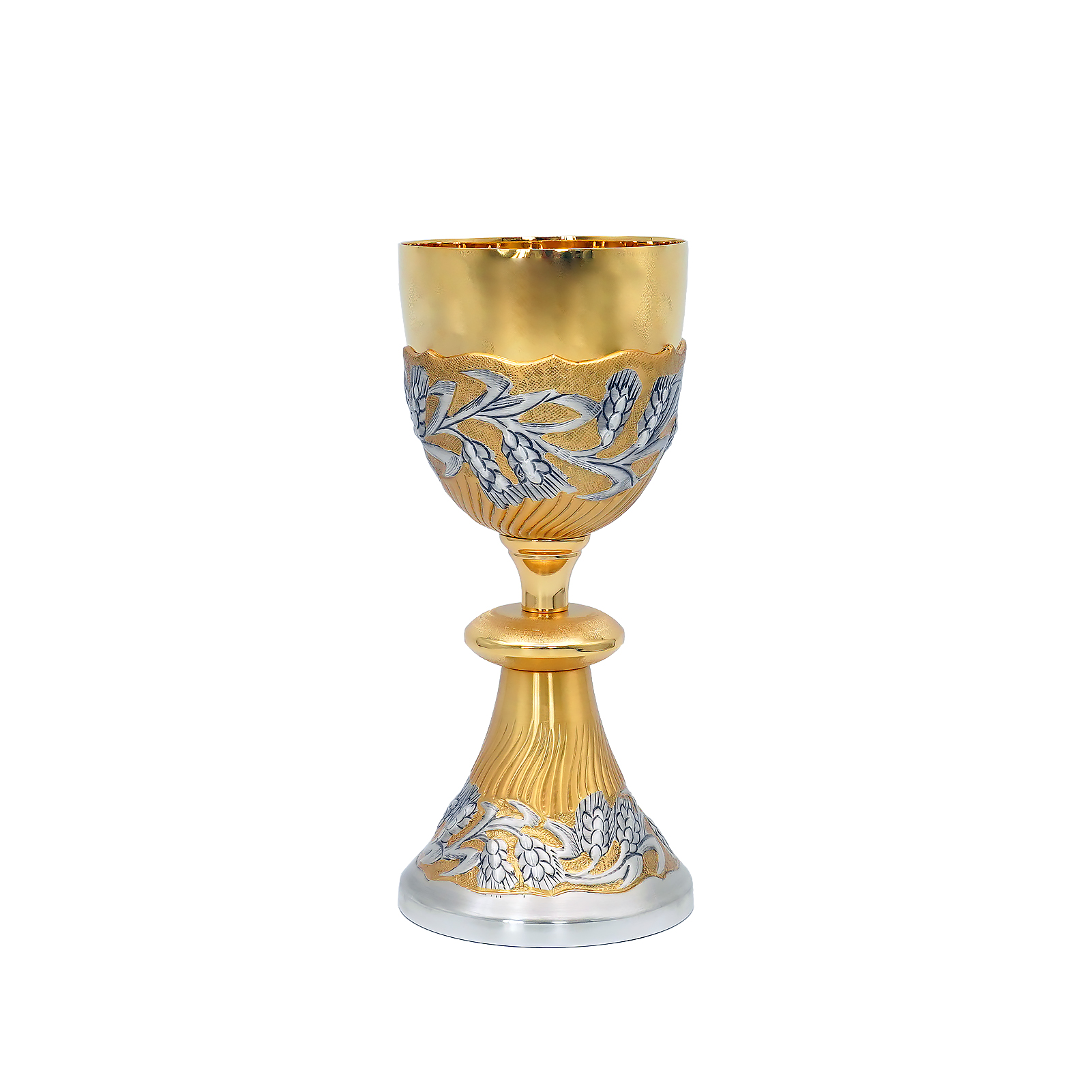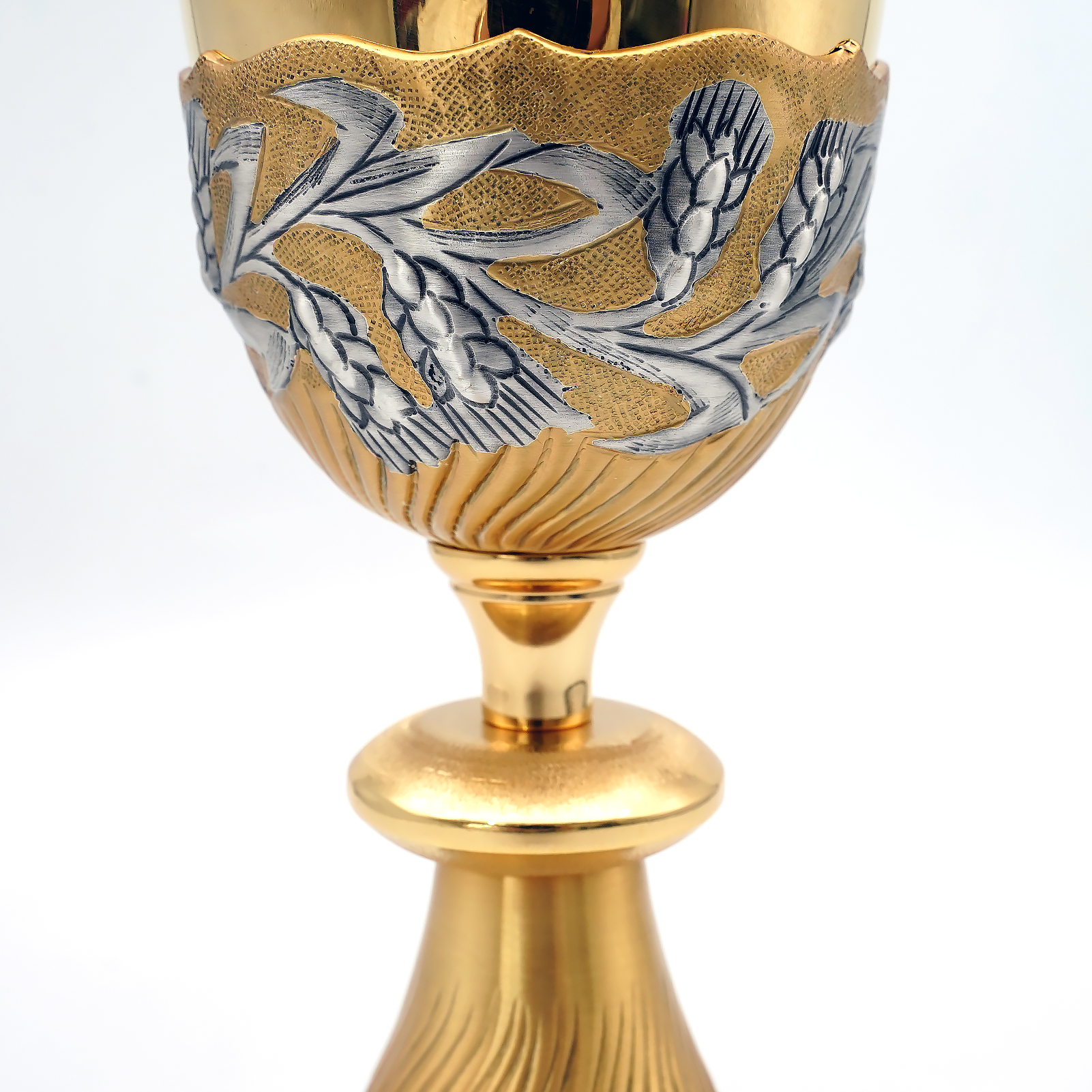 【现货】鱼与麦穗图案-手工雕刻-银色-圣爵杯圣体盒圣体碗带盖套装24+18+10.5cm