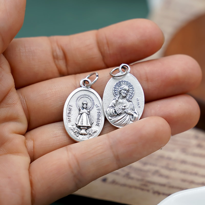 DIY小吊牌-布拉格圣婴+耶稣圣心-锌合金-2.2cm