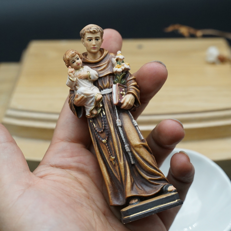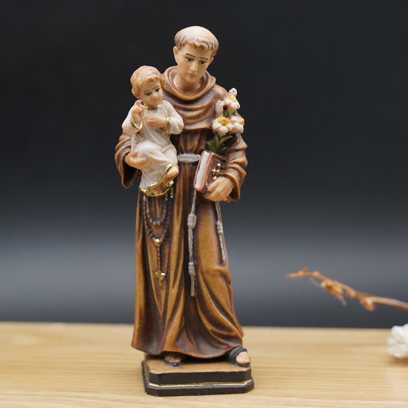 【现货】木雕- 圣安多尼抱耶稣-彩色