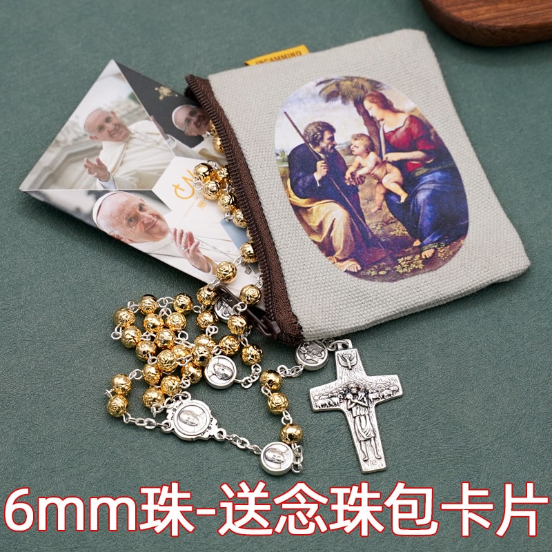 玫瑰念珠-耶稣善牧-配6毫米金色圆珠-送念珠包