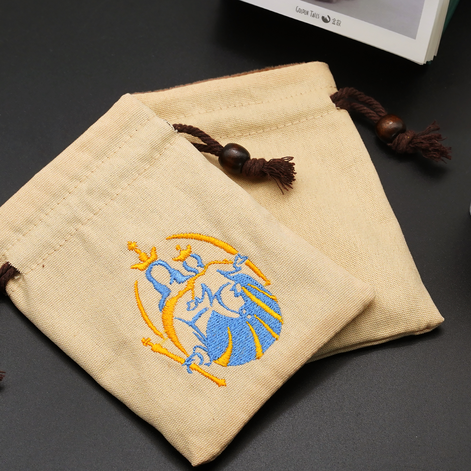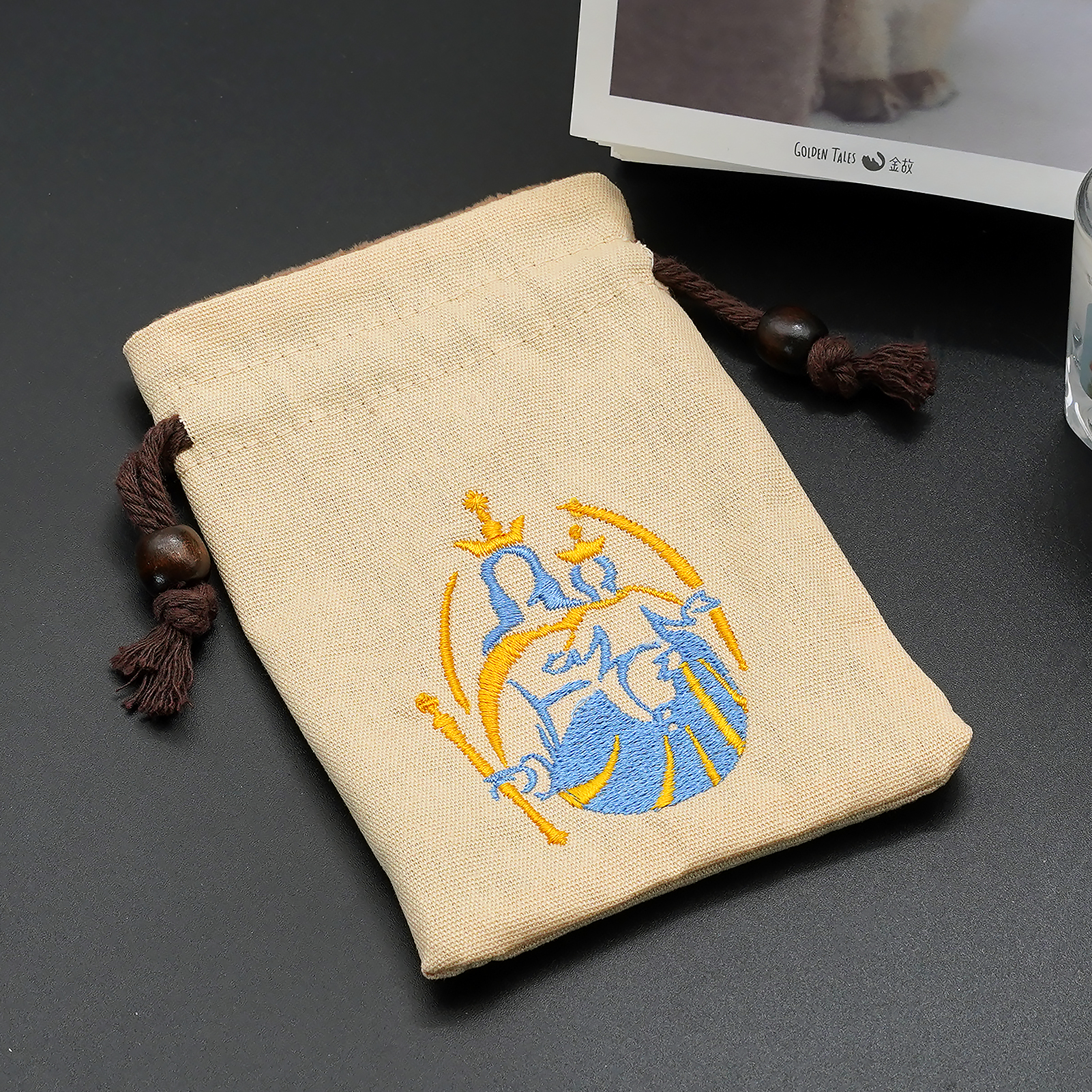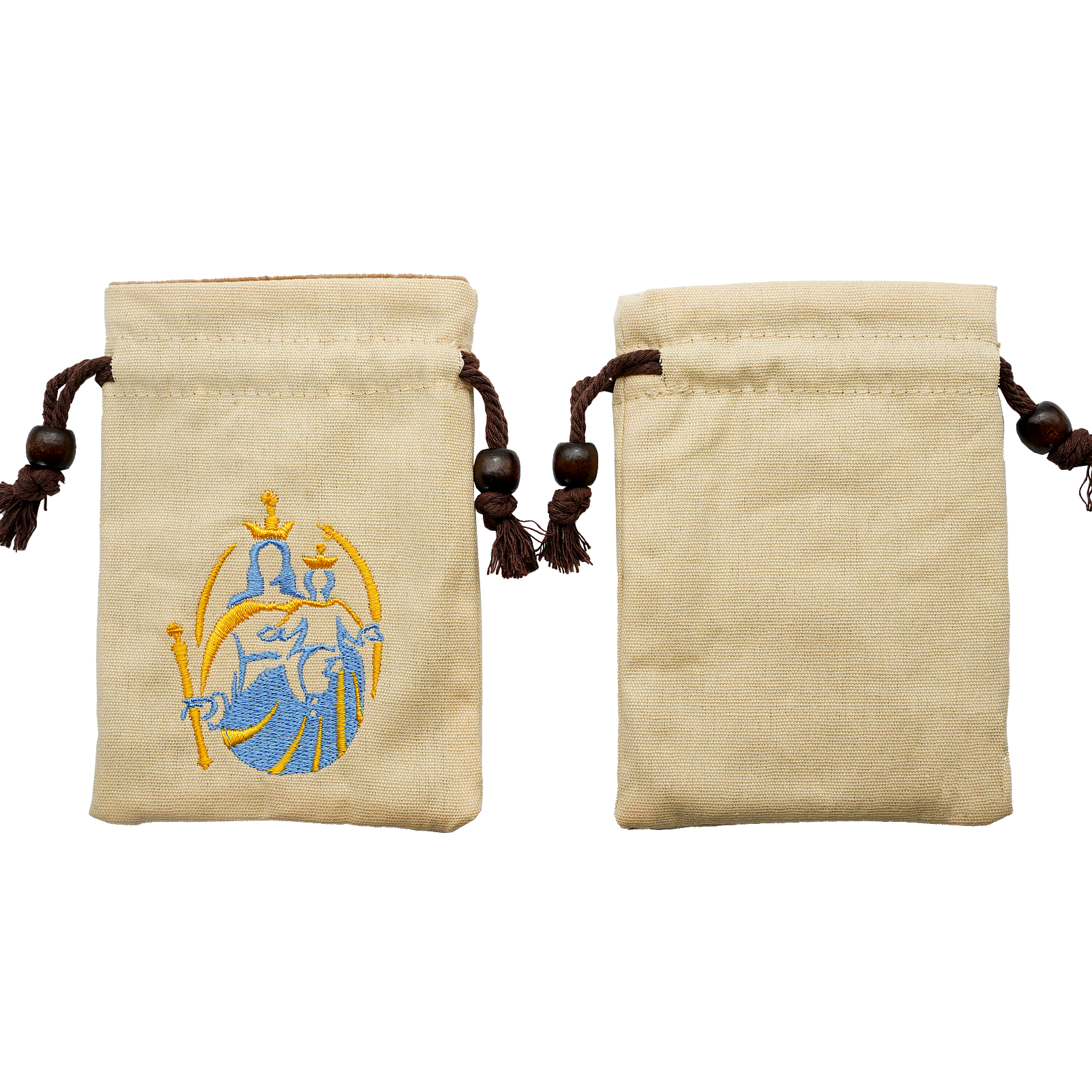 念珠包-刺绣抽拉绳-米黄色-进教之佑-13.3x10cm