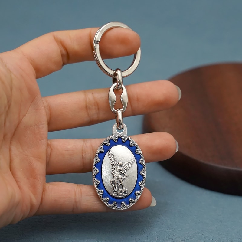 钥匙扣-弥额尔天使-合金-珐琅处理-椭圆花边-带包装袋-3.8×2.7cm
