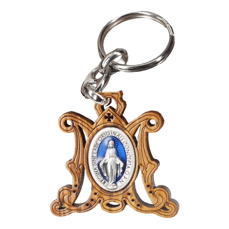 钥匙扣-橄榄木-M-带合金牌-4x4cm