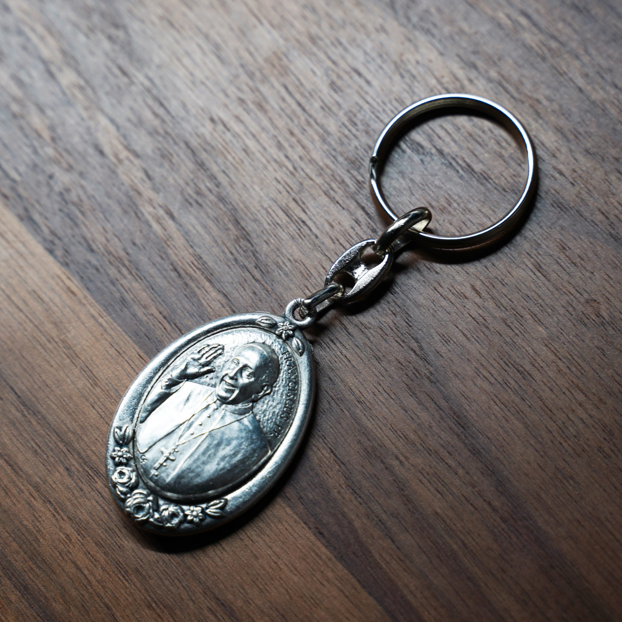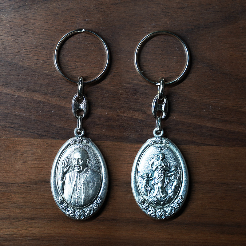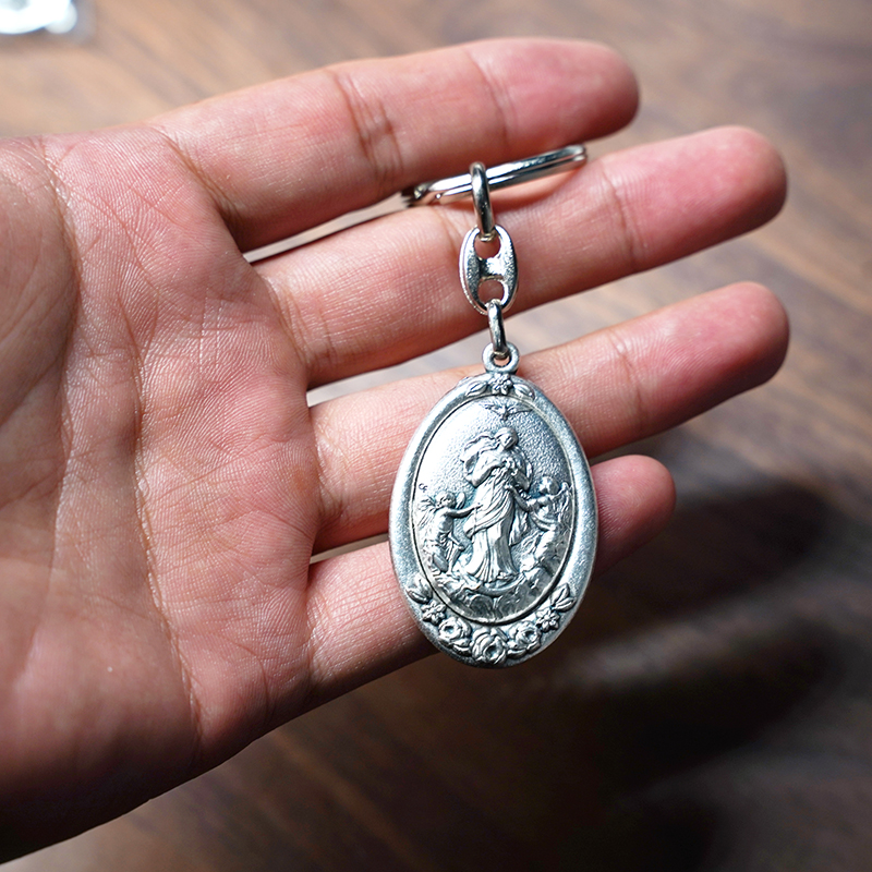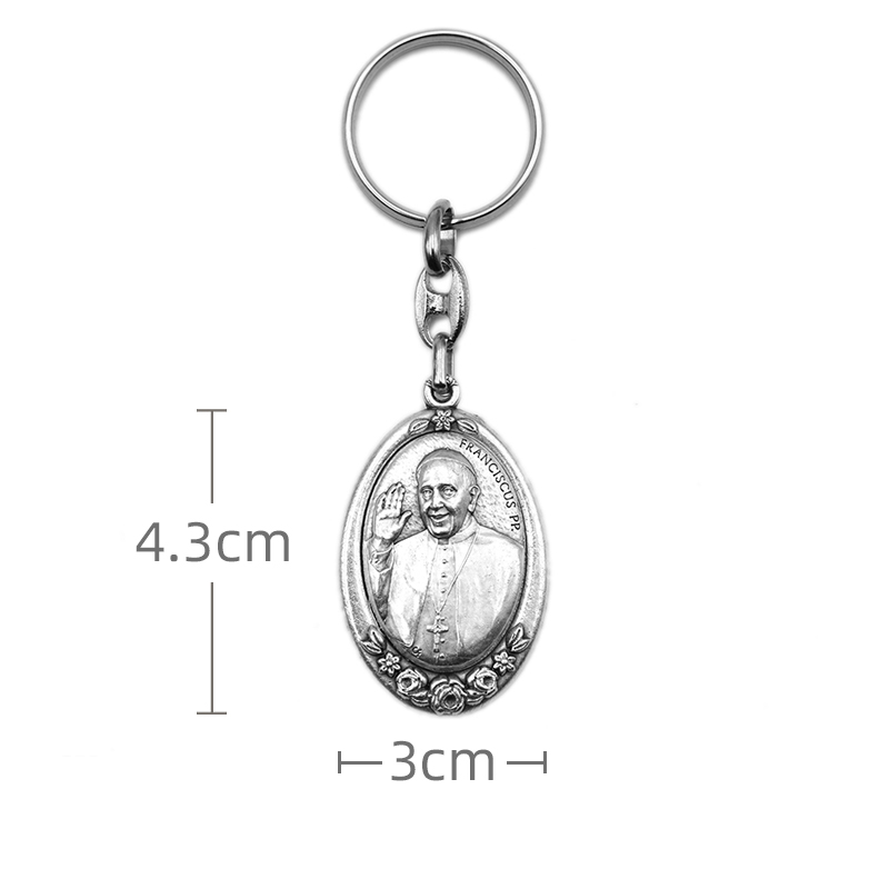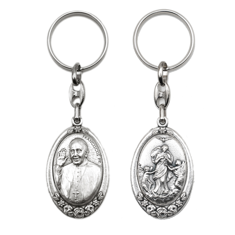 钥匙扣-教宗方济各-解结圣母-合金-镀银-椭圆-带双面合金圣牌-4.3x3cm