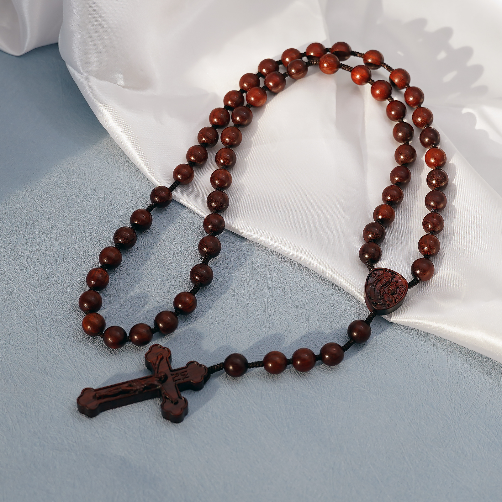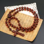 玫瑰念珠-皇冠圣母子-紫檀-绳编-10mm送念珠包