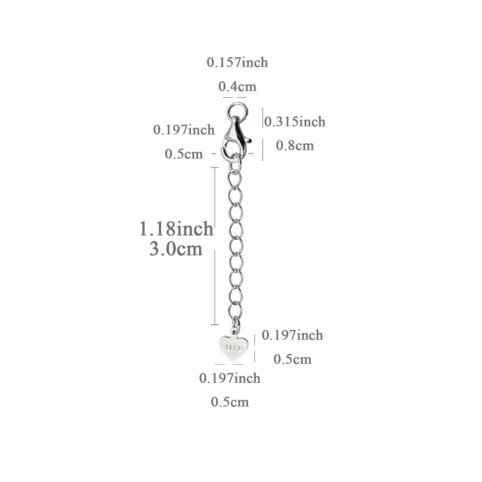 DIY-龙虾扣-925银-银色-带延长链3cm/5cm