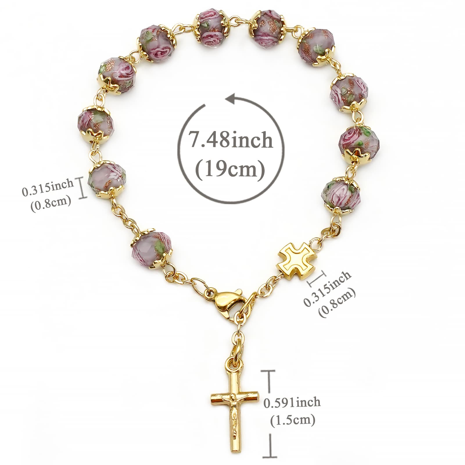 Handmade Miraculous religious bracelets with faceted Lucite beads (8mm diameter) and Italian accessories. Adorned with a charm of the Virgin Mary for blessings and miracles.