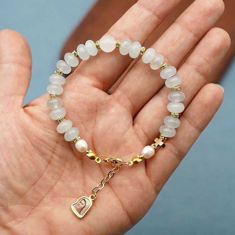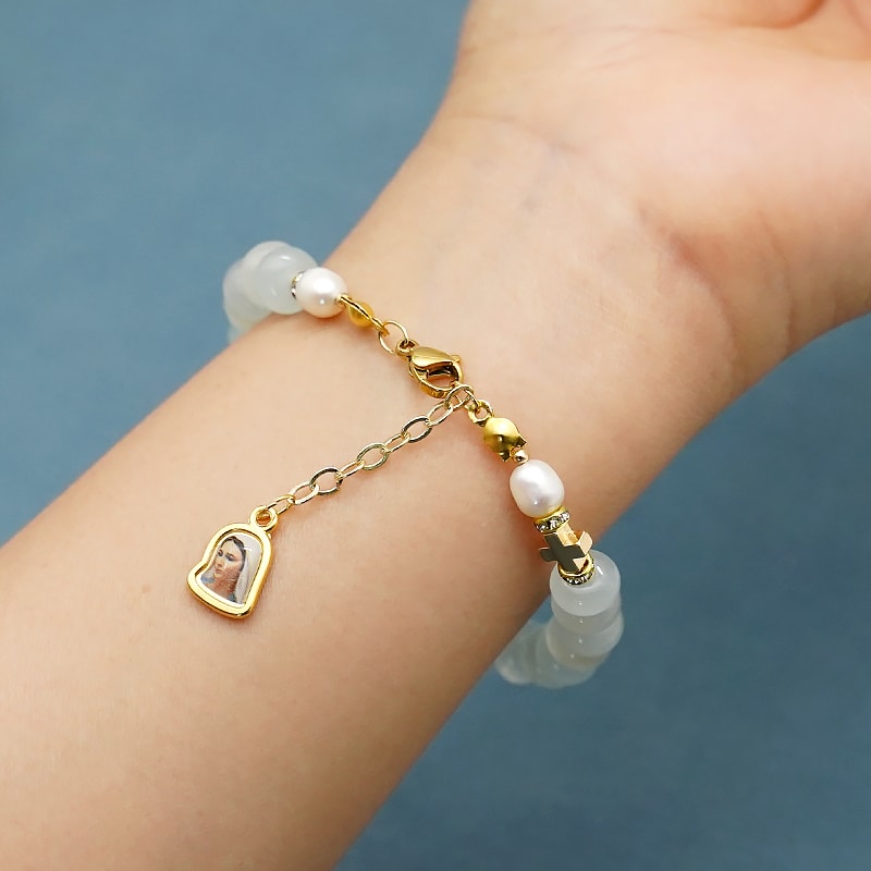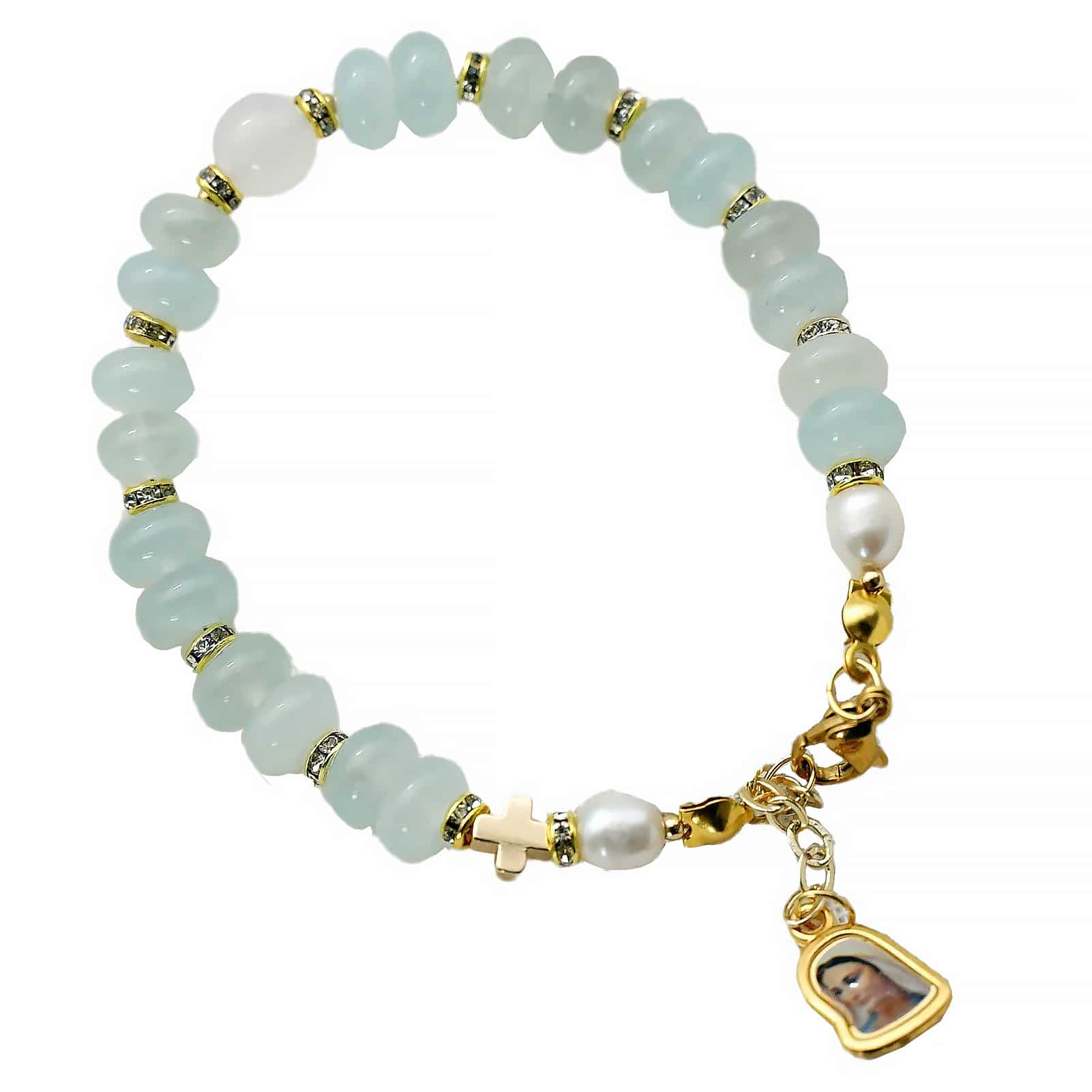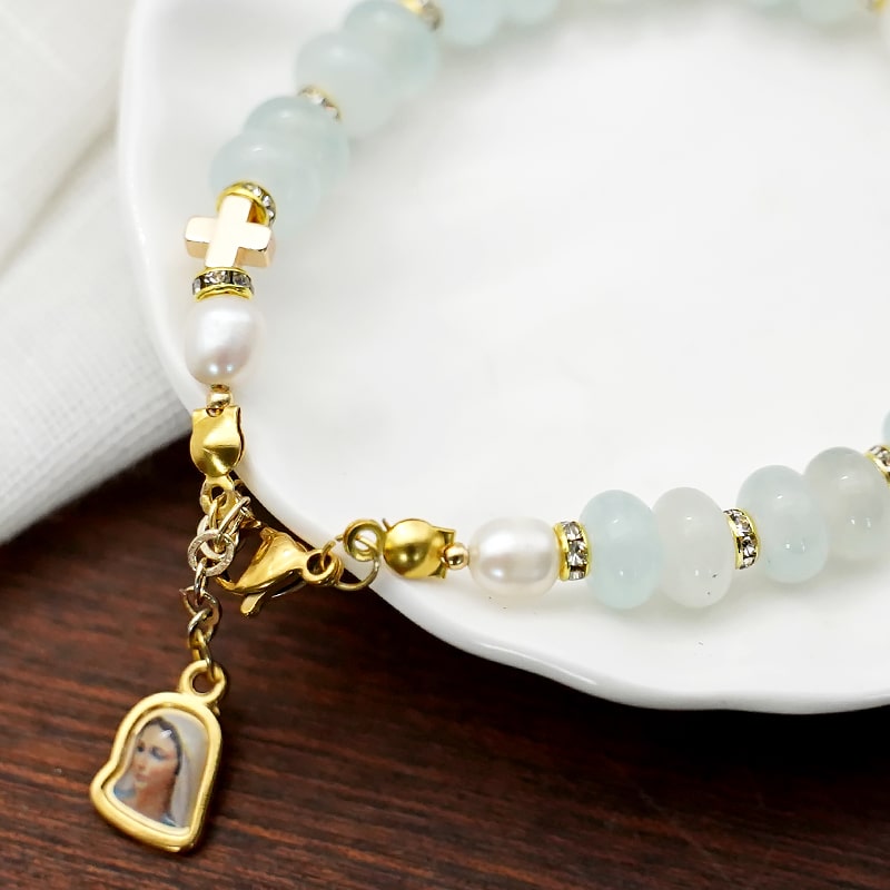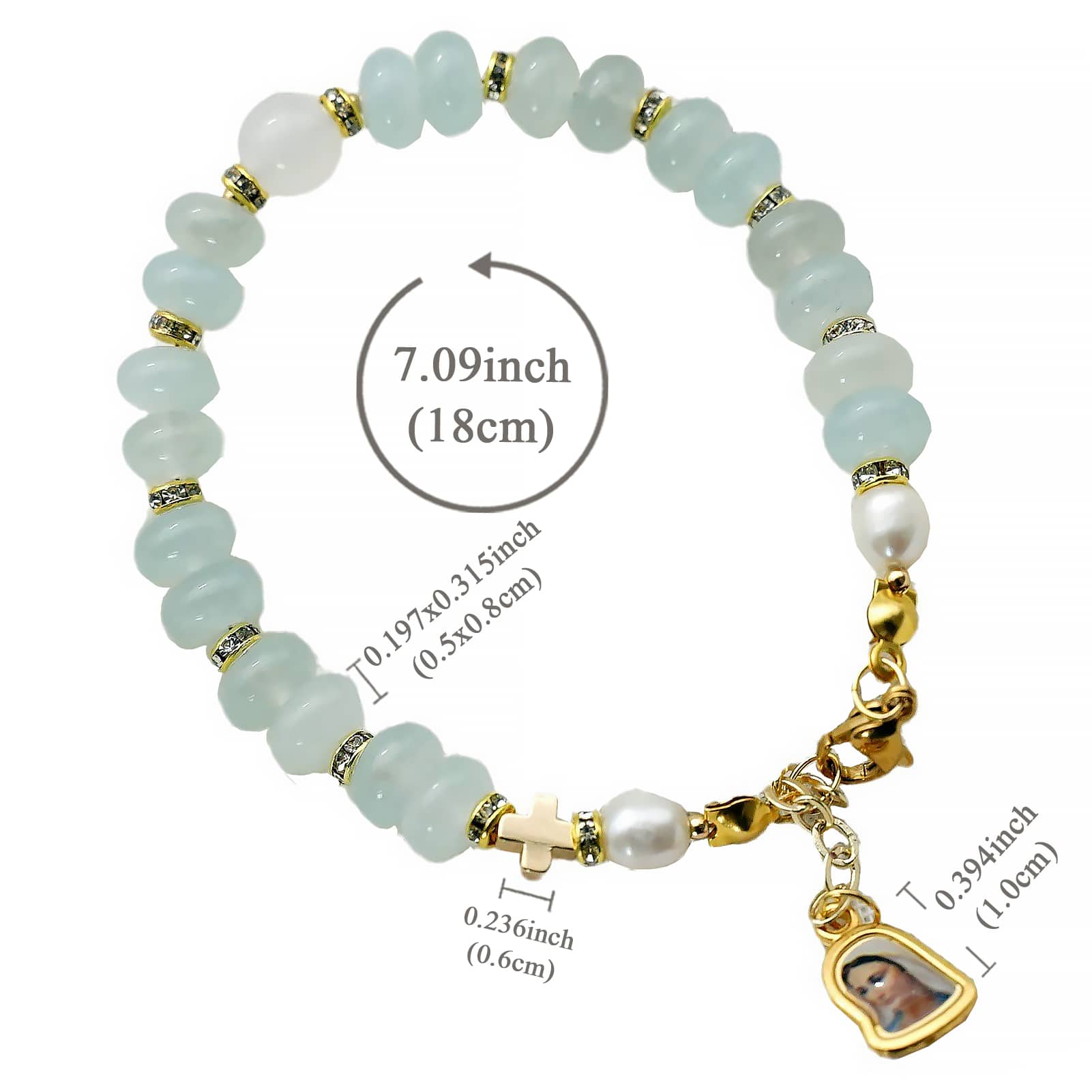 龙虾扣手链-车轮珠浅蓝色-默主哥耶吊坠-5x8mm