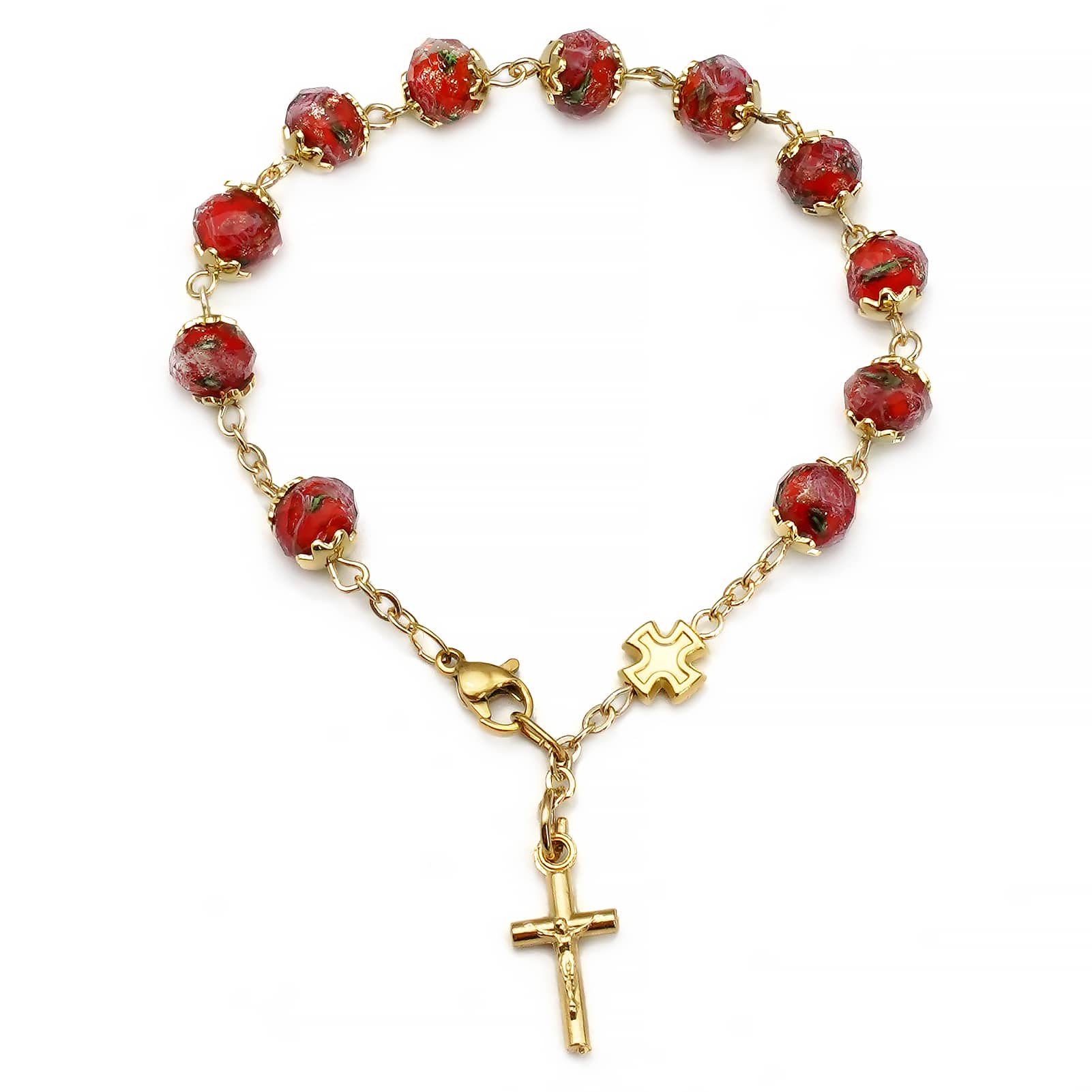 龙虾扣手链-红色琉璃内花-8mm