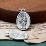 Beautiful DIY accessory for making a Catholic rosary. This 2.2 cm high silver-plated zinc alloy medal features Mary Help of Christians and Sacred Heart of Jesus designs.