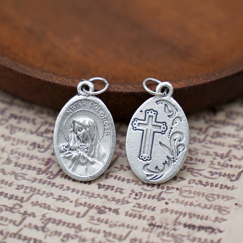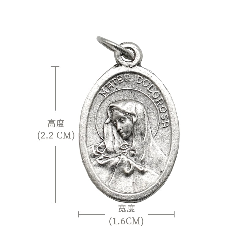 DIY小吊牌-痛苦圣母+十字架和花-锌合金-2.2cm