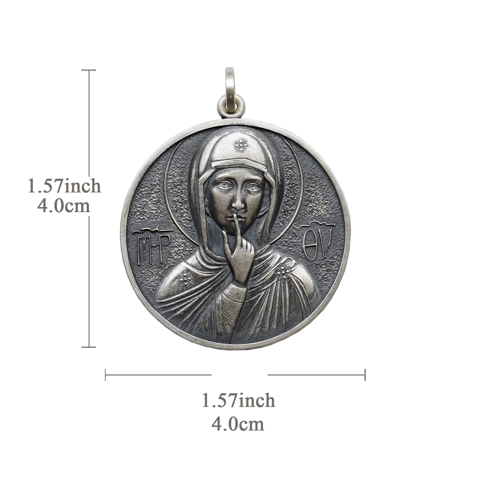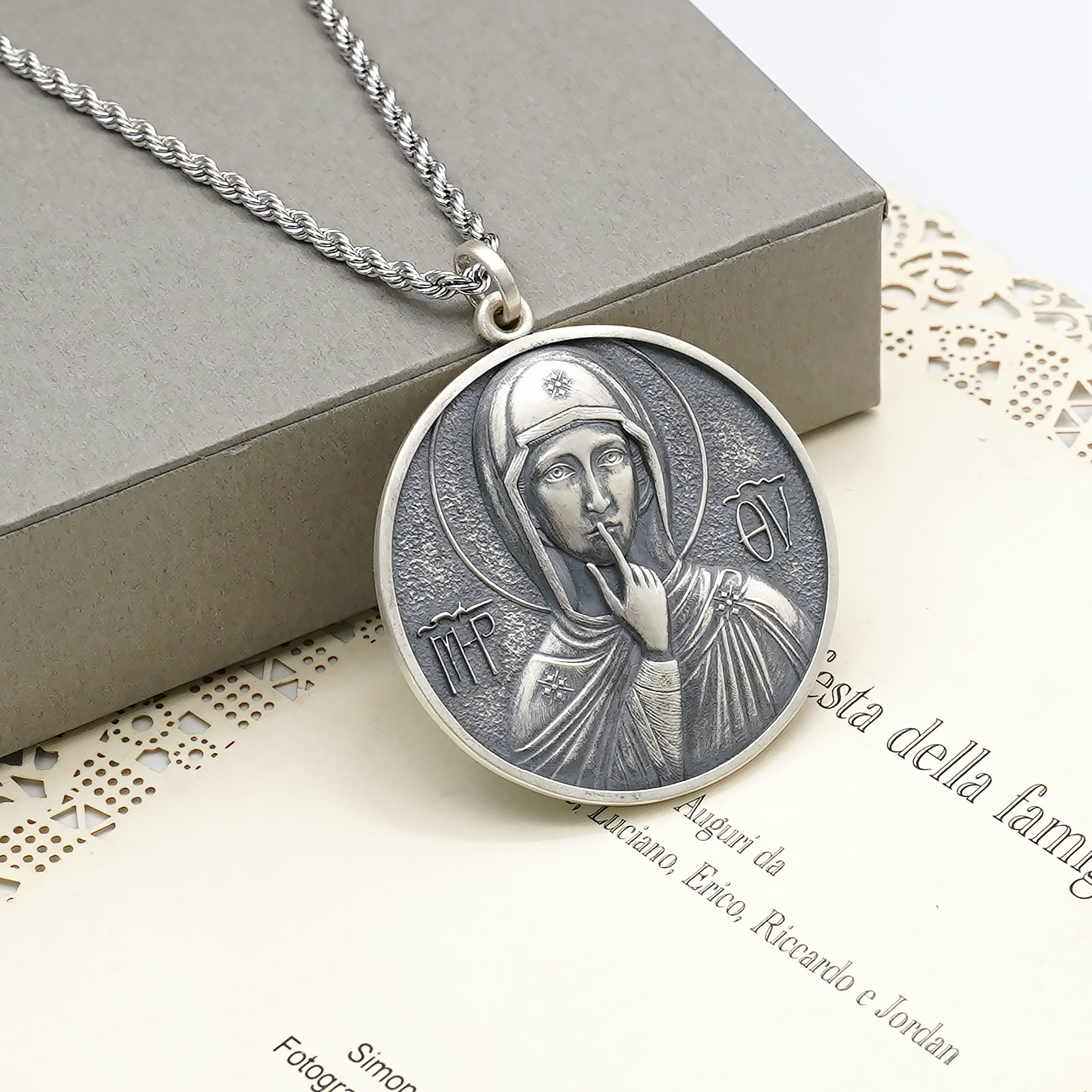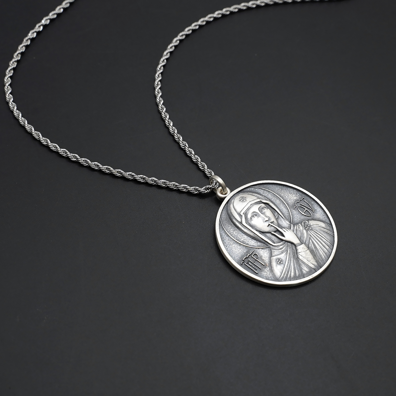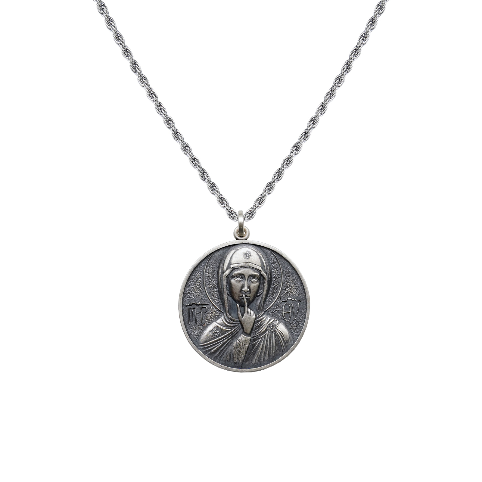 项链圣牌-静默圣母-925银-4cm加麻花链