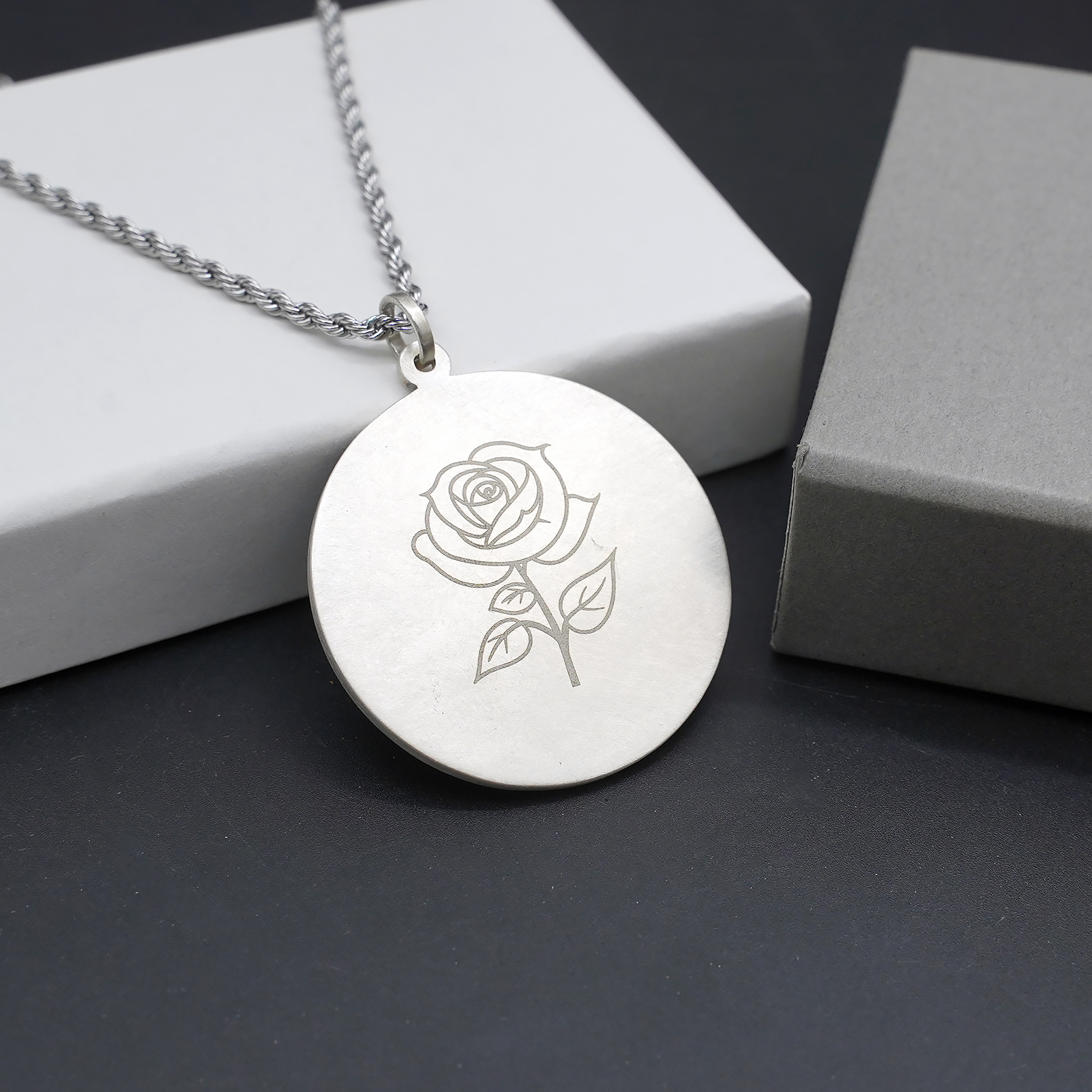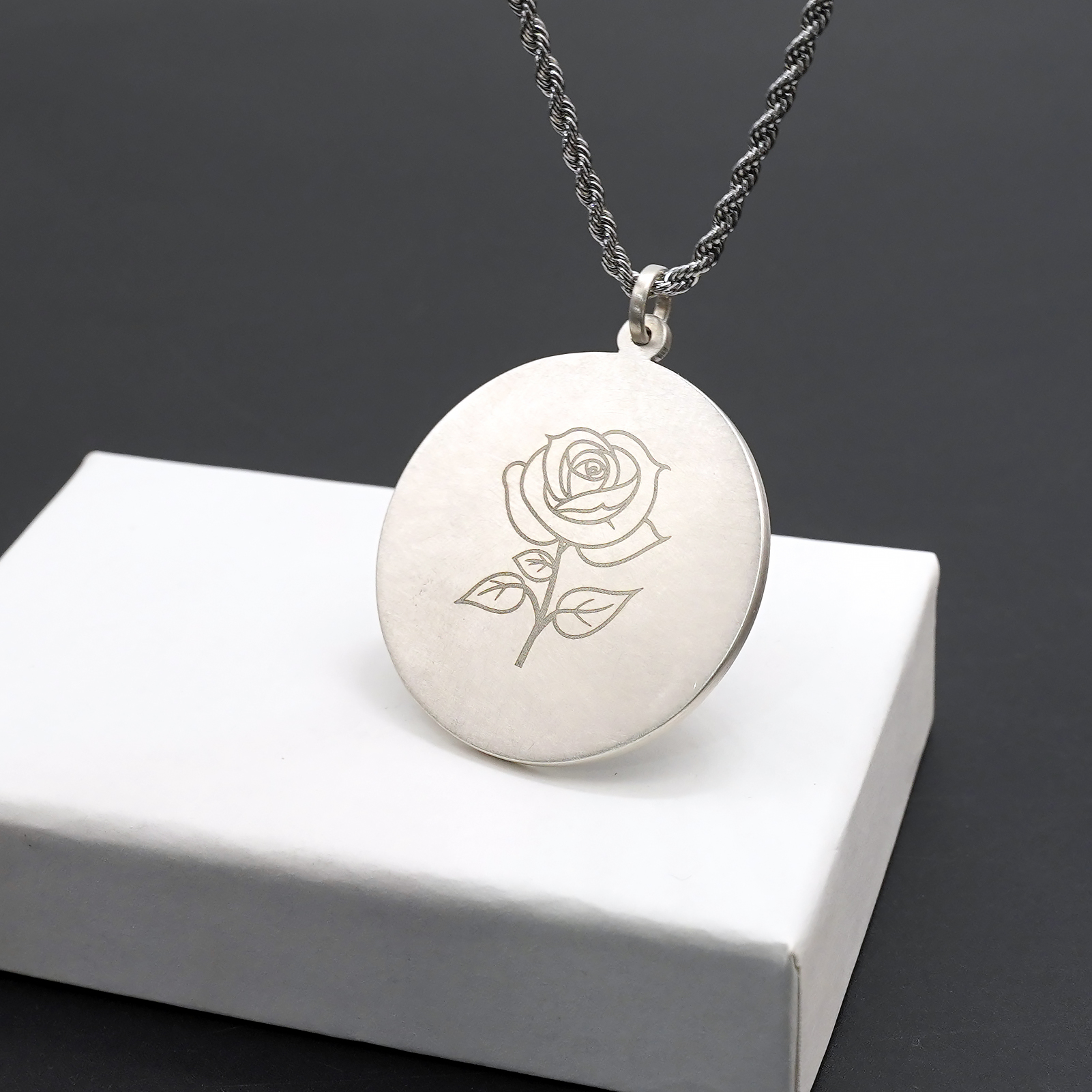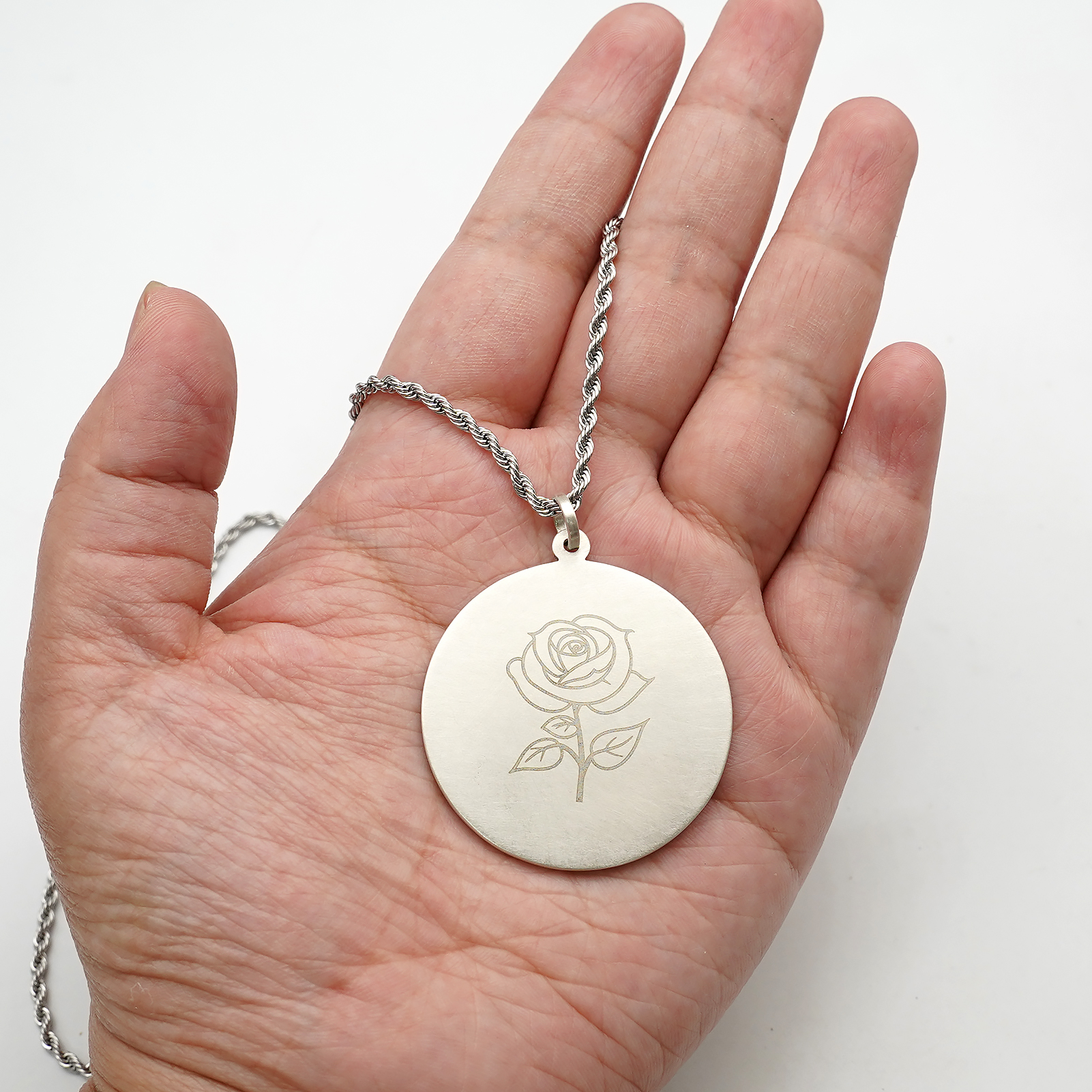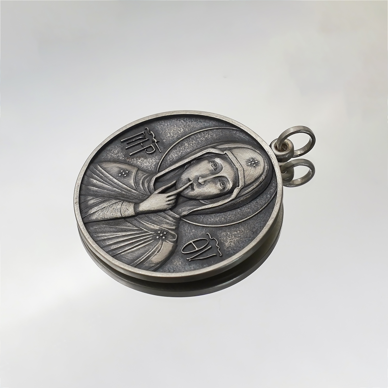 项链圣牌-静默圣母-925银-4cm加麻花链