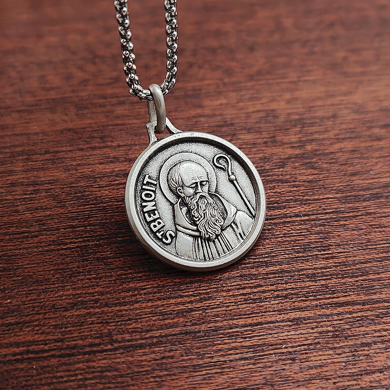 法国银圣牌- 圣本笃半身像 – 925银 – 1.8cm