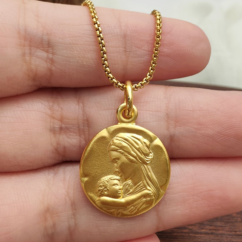 法国银圣牌- 温柔的圣母 – 金色 – 1.8cm