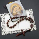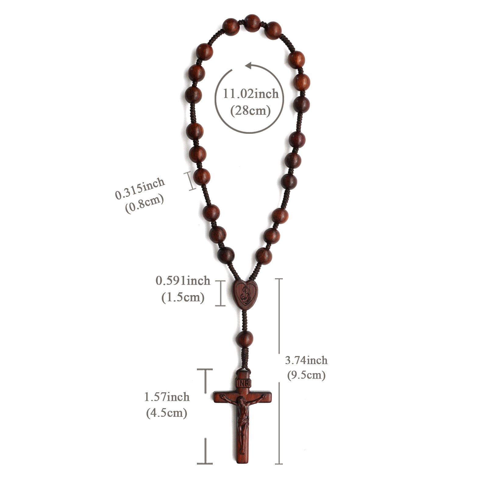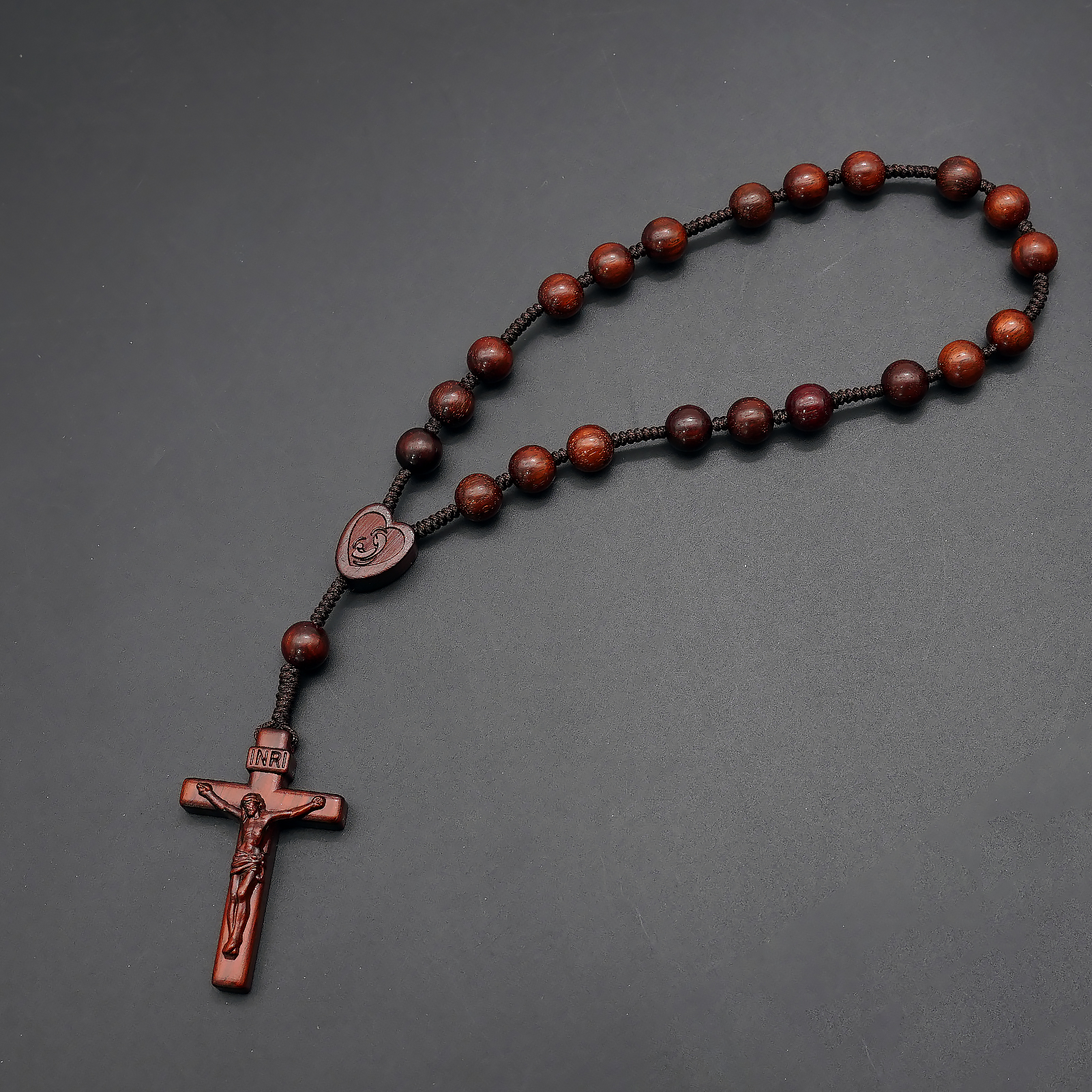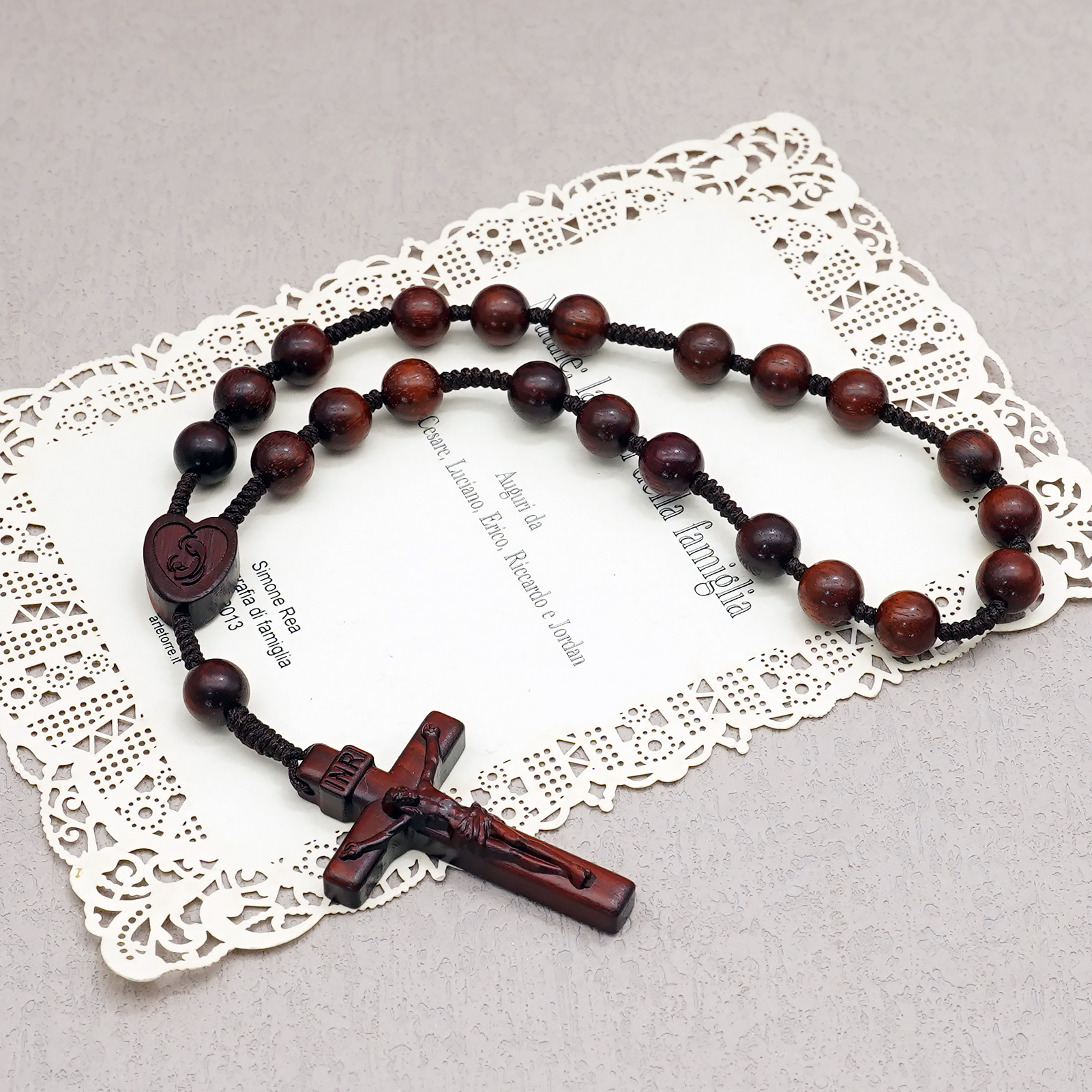 玫瑰念珠-合掌圣母-5x7mm椭圆橄榄木-绳编念珠送念珠包