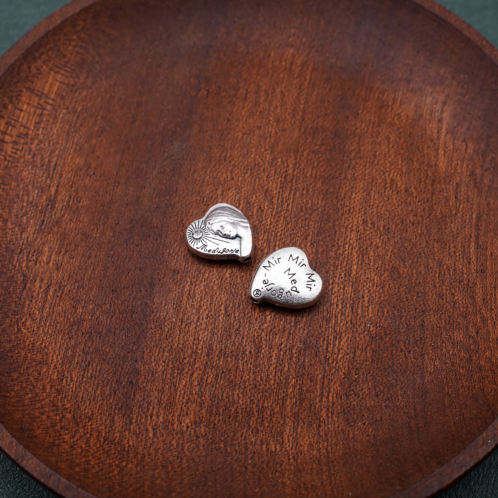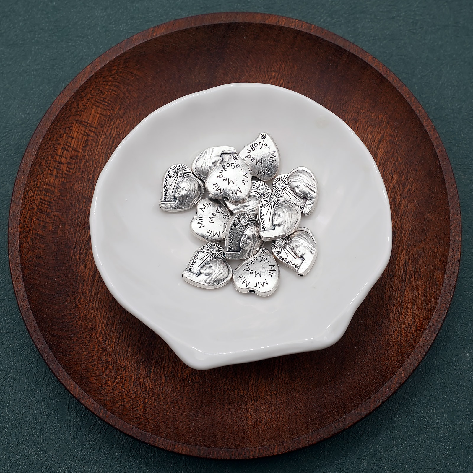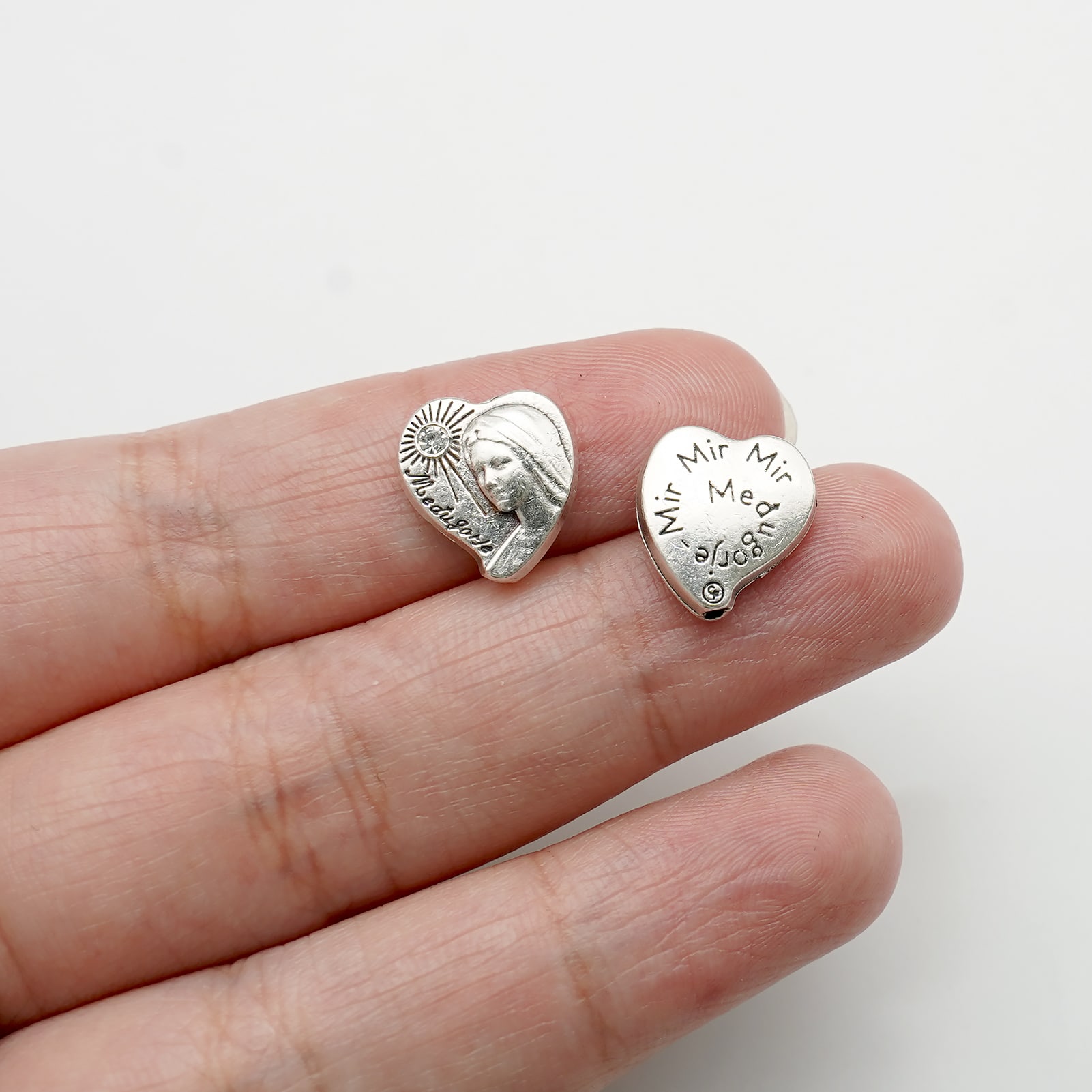 DIY珠子-默主哥耶桃心银色白钻-锌合金-13mm