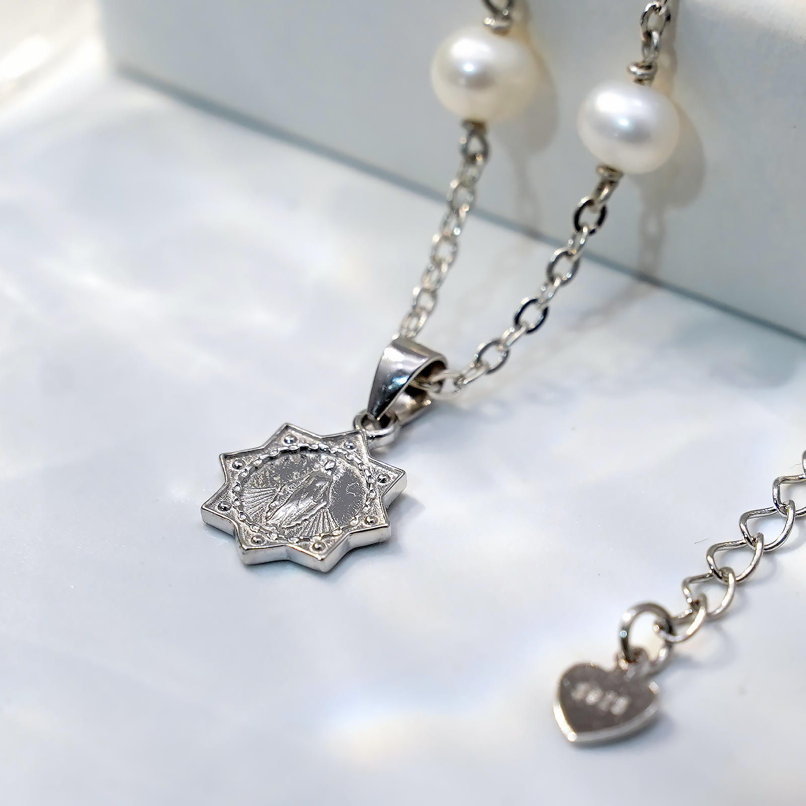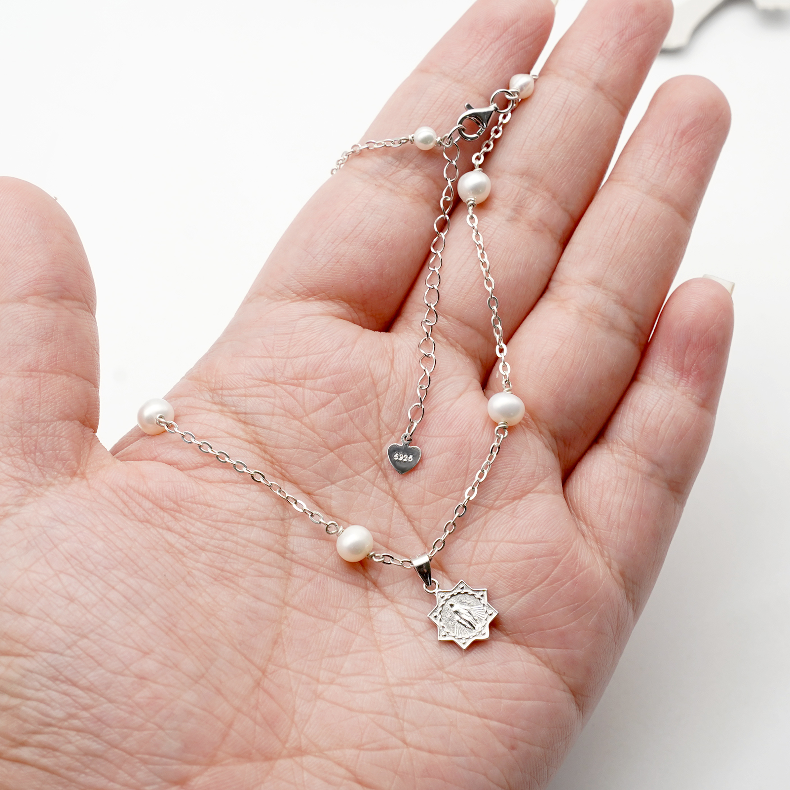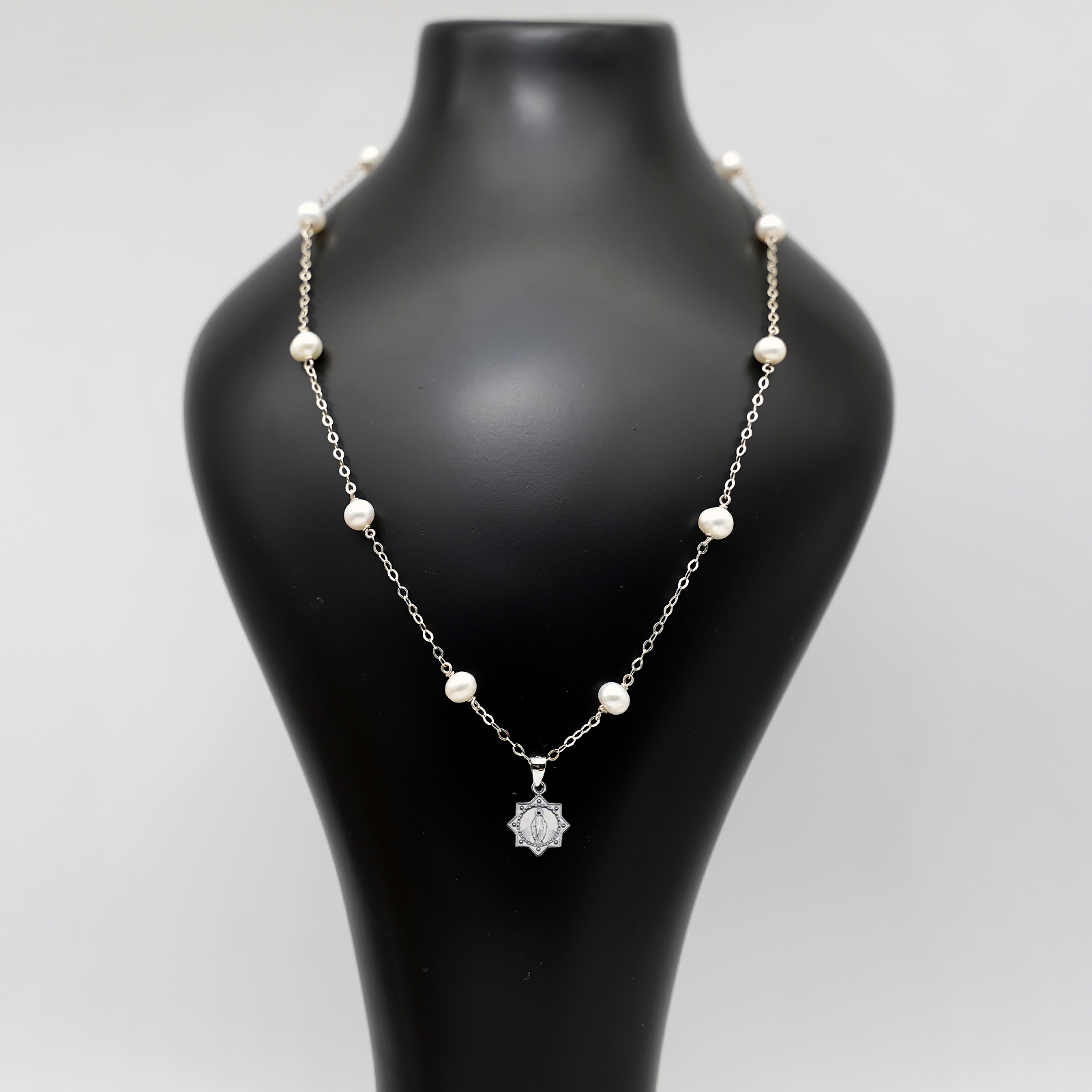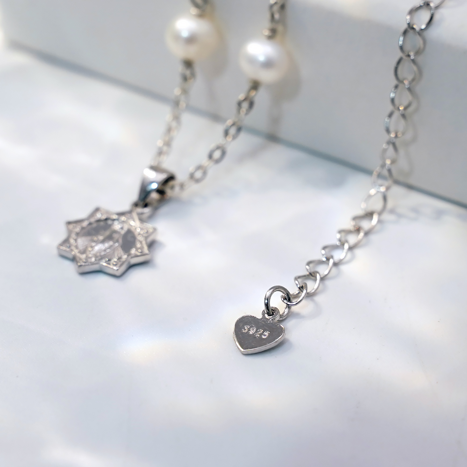 珍珠颈链-显灵圣母-925银吊坠-满天星-龙虾扣-42cm