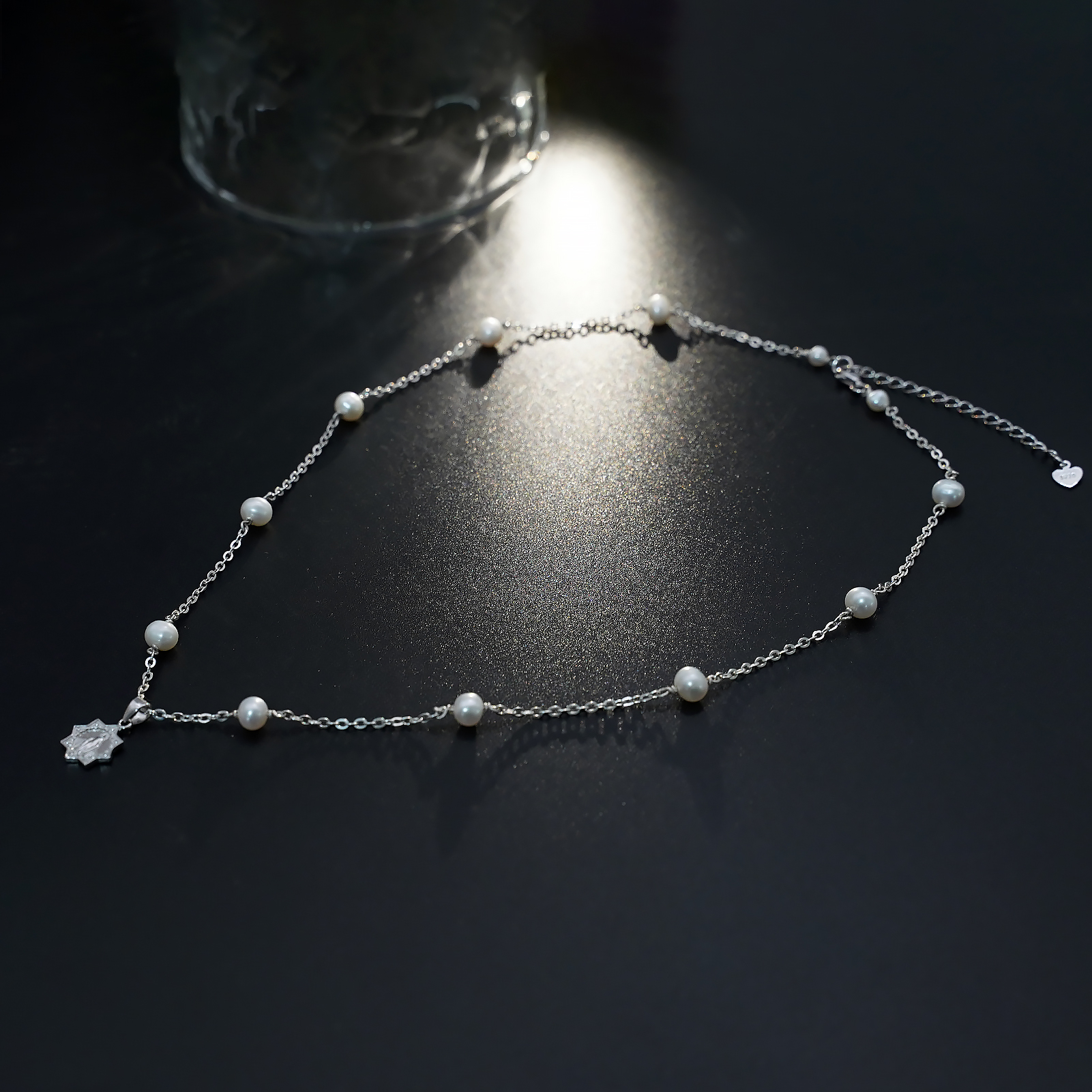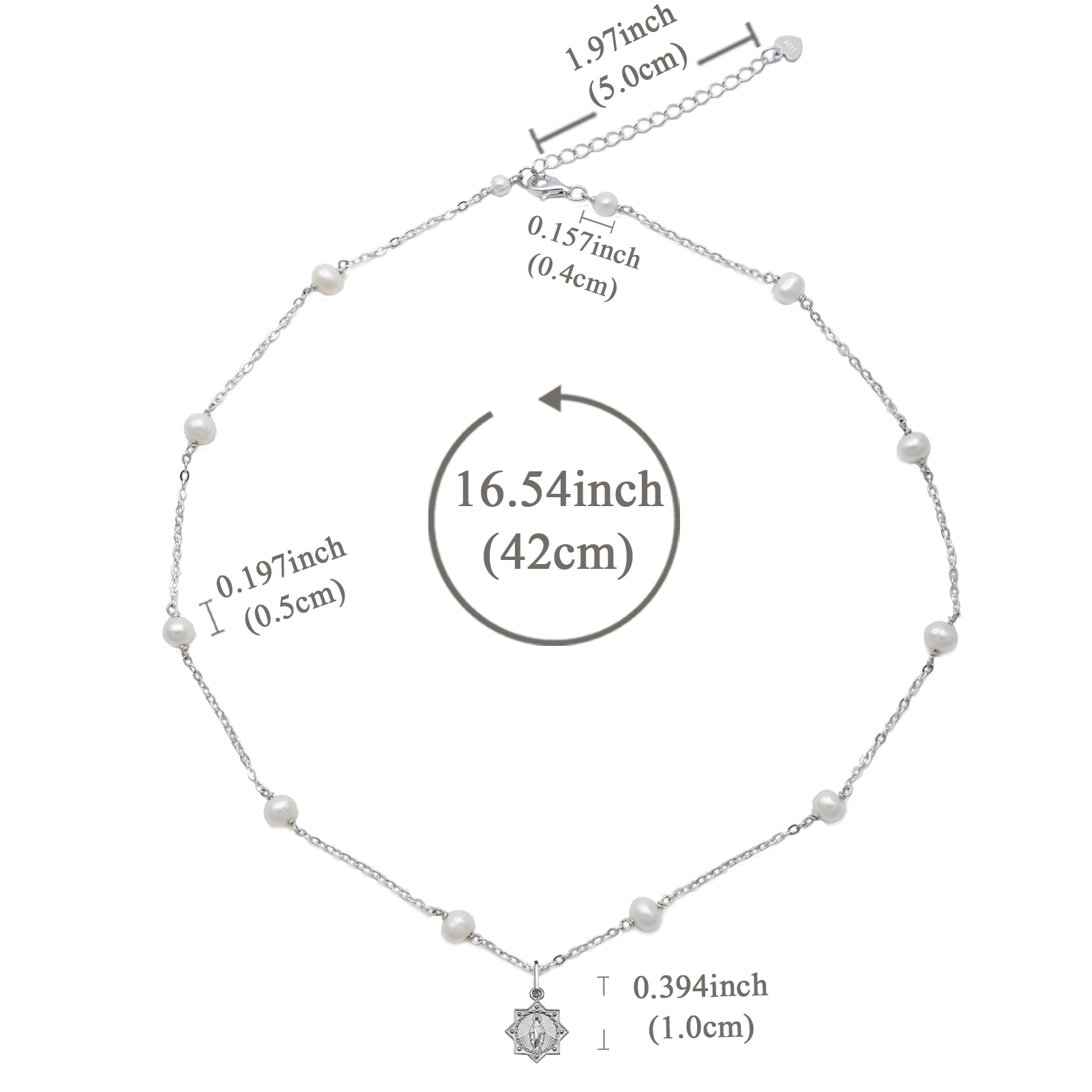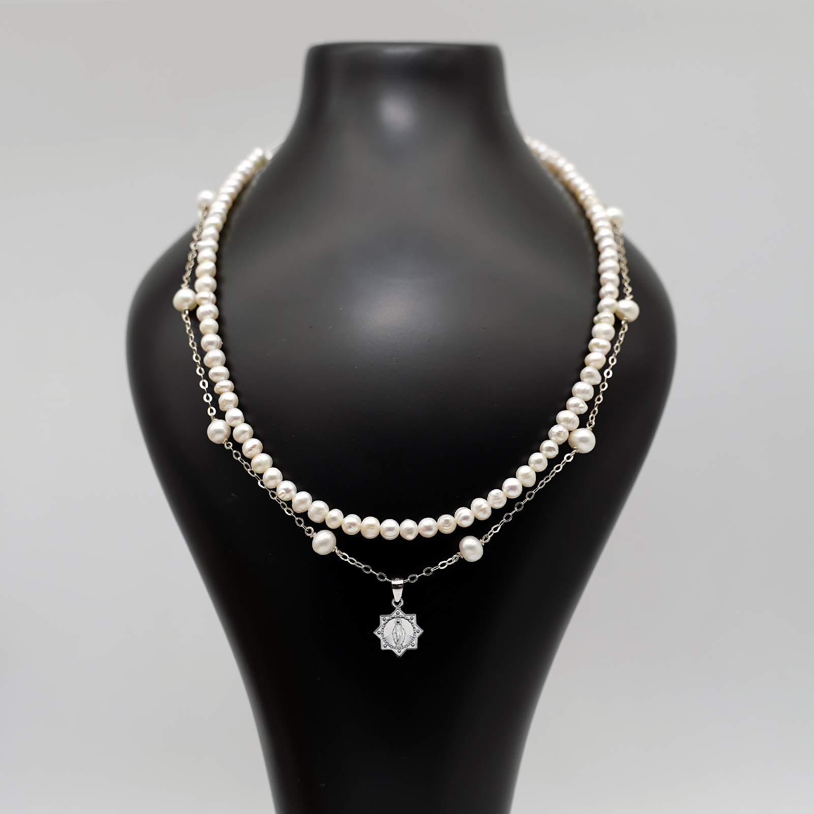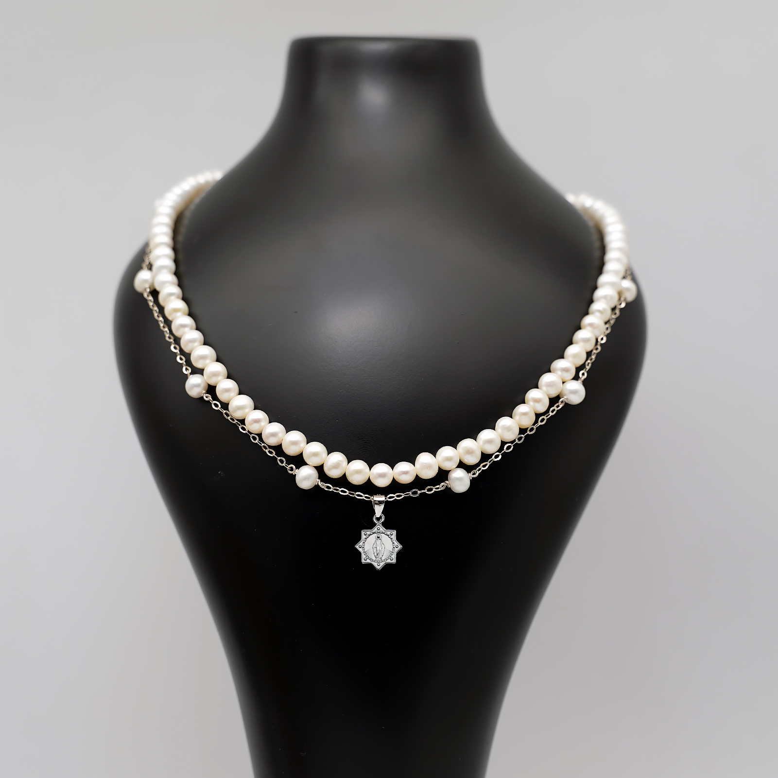 珍珠颈链-显灵圣母-925银吊坠-满天星-龙虾扣-42cm