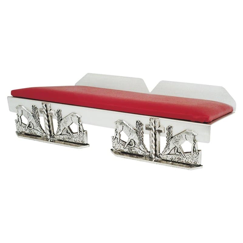 Brass missal stands with castings of deers drinking at a spring.