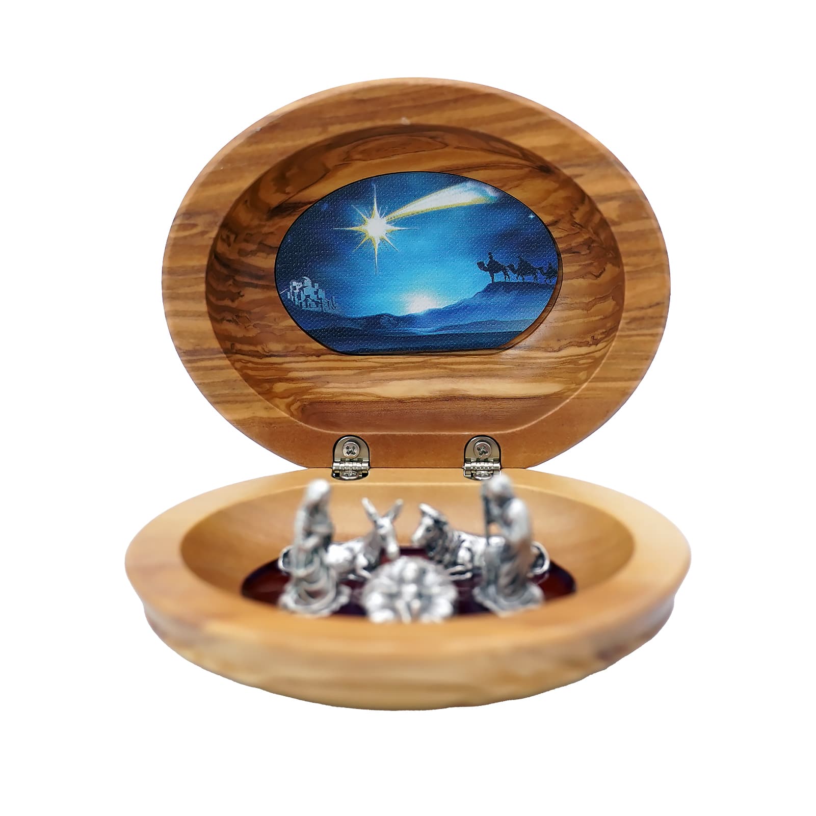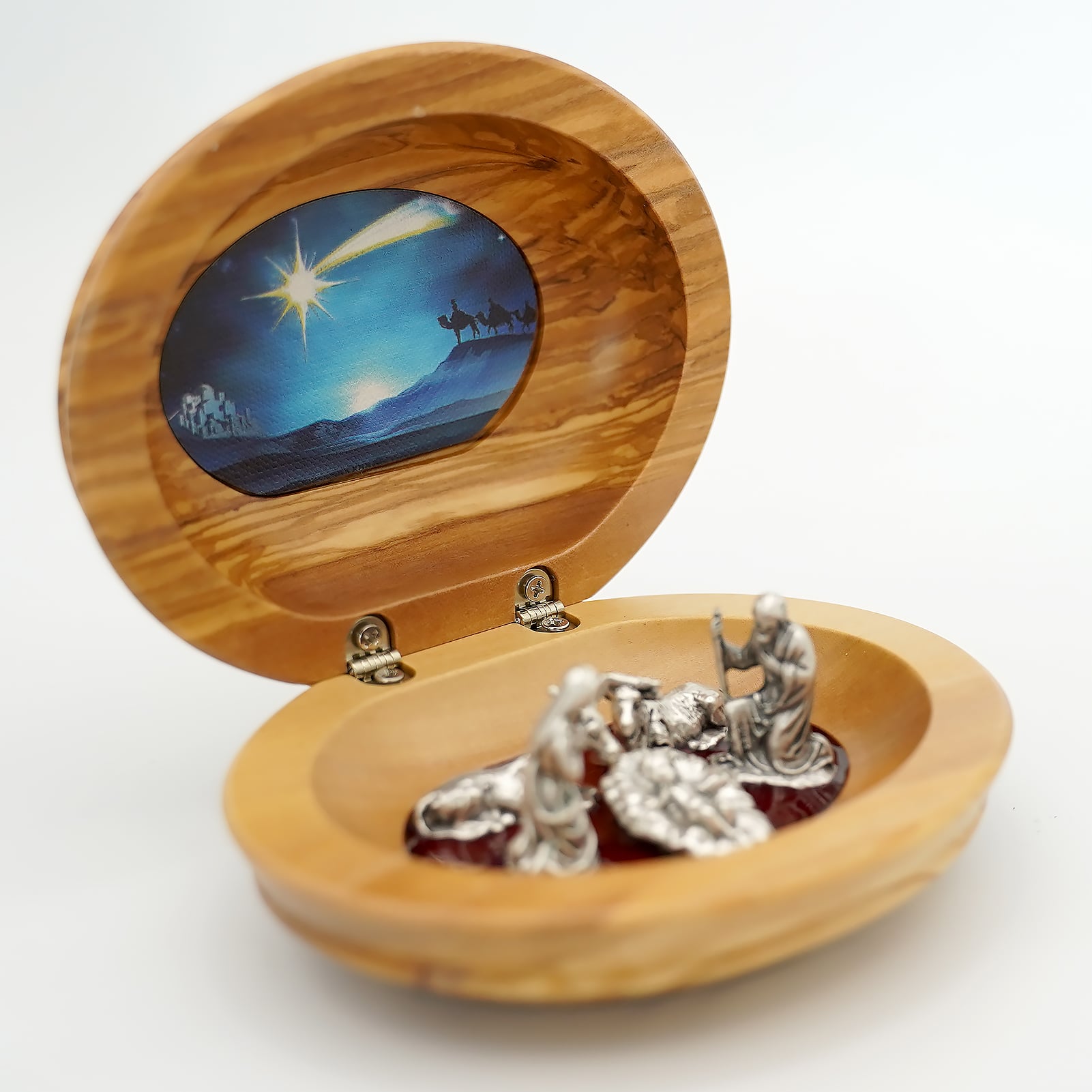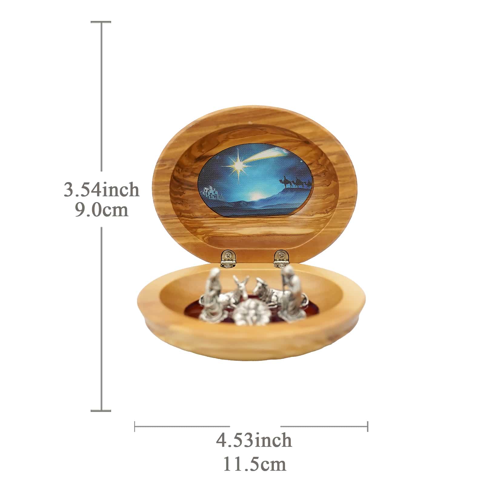 马槽-椭圆盒-橄榄木-珐琅处理彗星图案-金属组-11×11.5cm