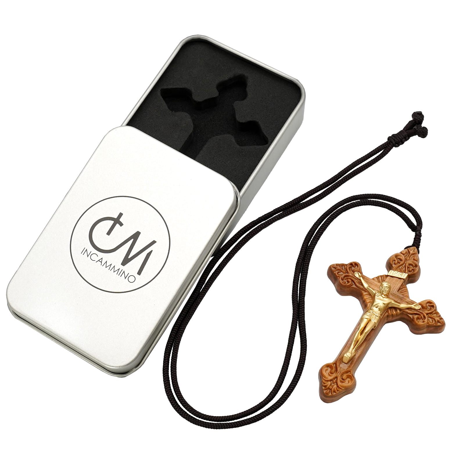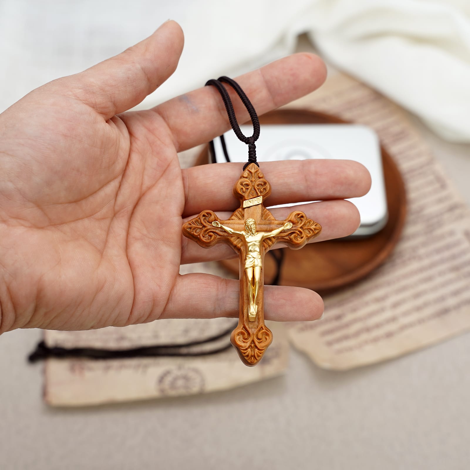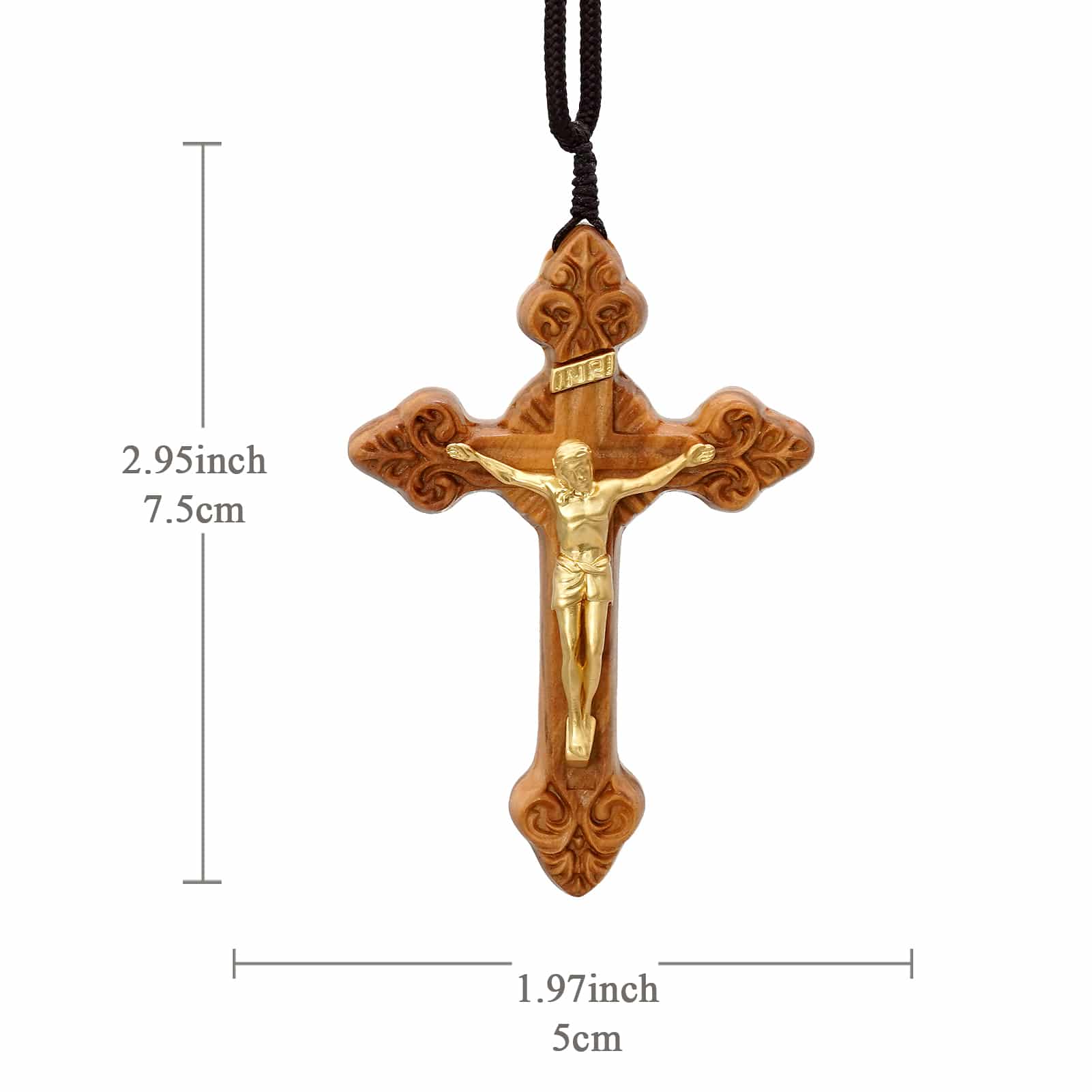 项链十字架-巴洛克式-橄榄木黄铜-7.5cm-礼盒装-绳子可调节至60cm