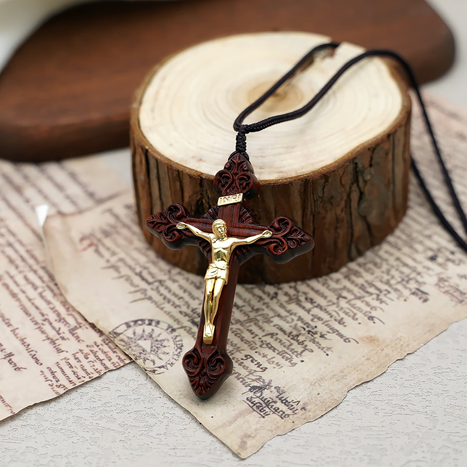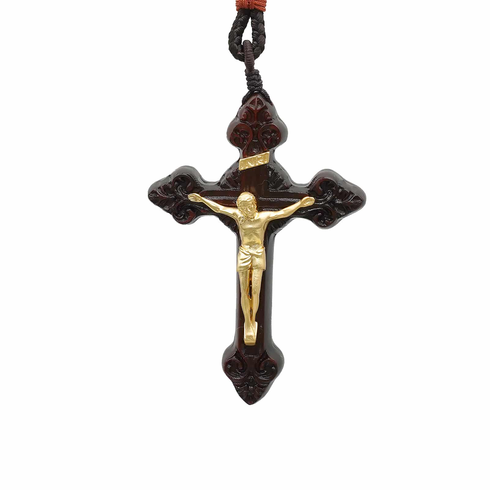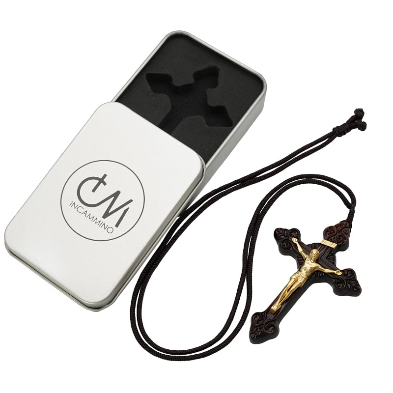 项链十字架-巴洛克式-紫檀木黄铜-7.5cm-礼盒装-绳子可调节至60cm