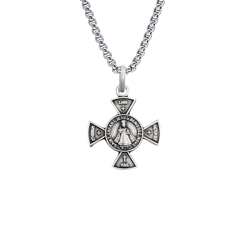 法国银圣牌-项链十字架-布拉格圣婴-925银-1.5cm(送60cm钛钢链)