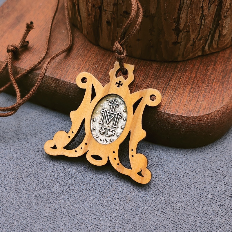 圣牌-橄榄木-“M”-带合金牌-带挂绳-4x4cm