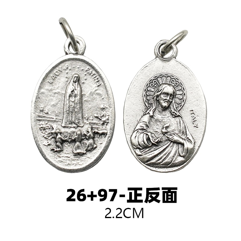 DIY小吊牌-法蒂玛+耶稣圣心-锌合金-镀银-2.2cm