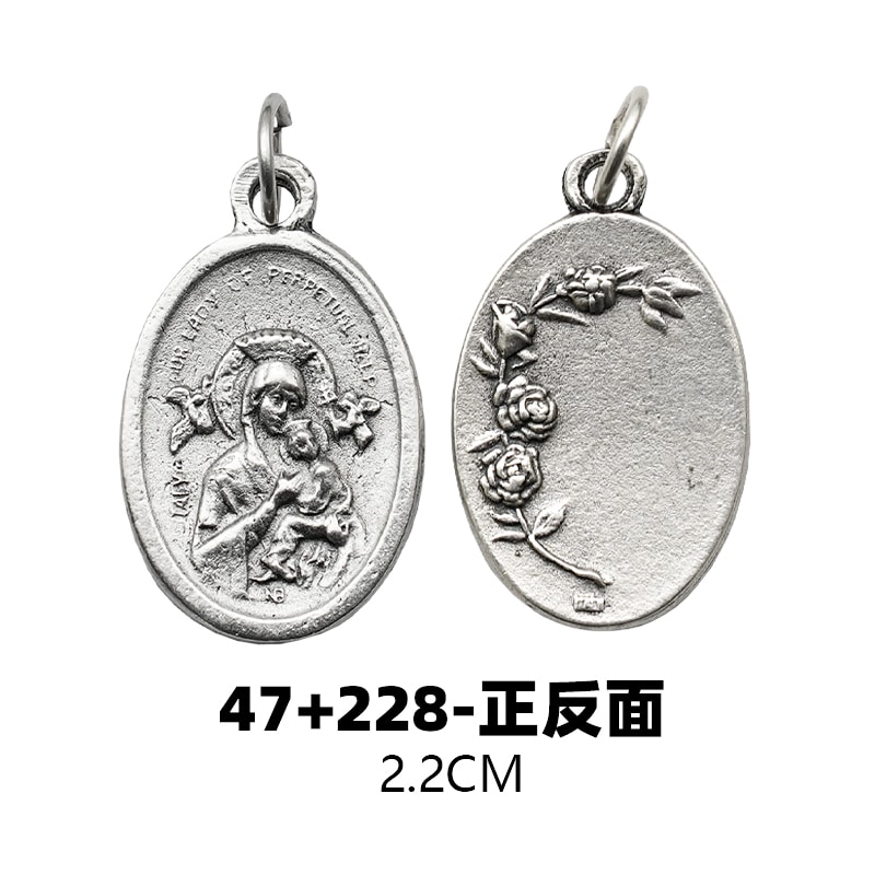 DIY小吊牌-永援圣母+玫瑰花-锌合金-镀银-2.2cm