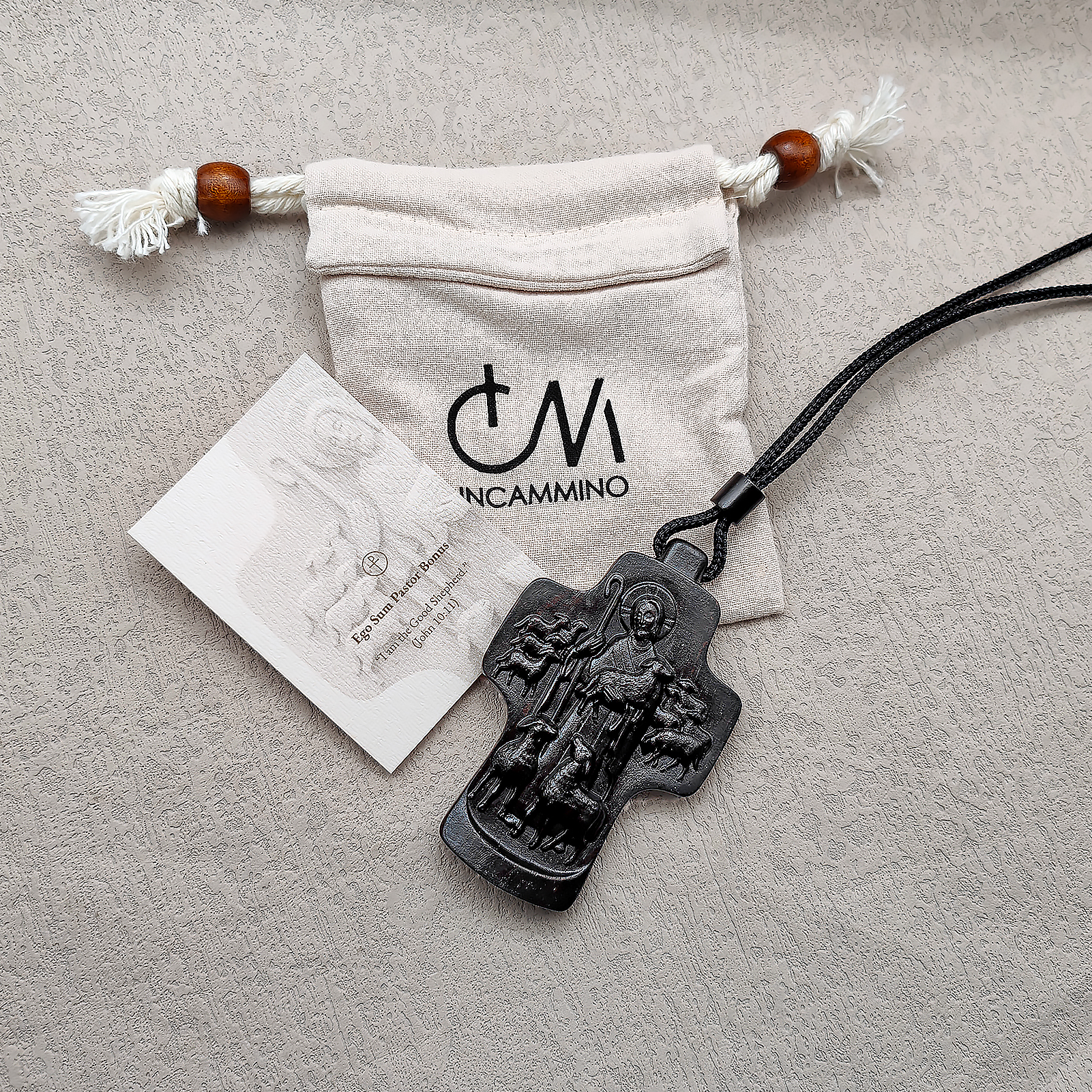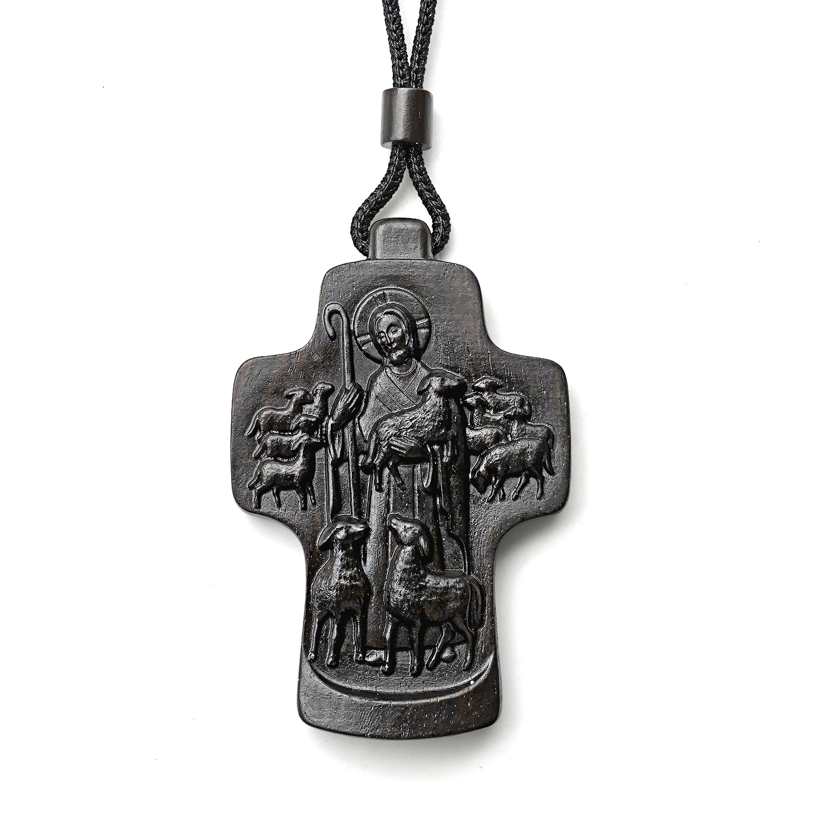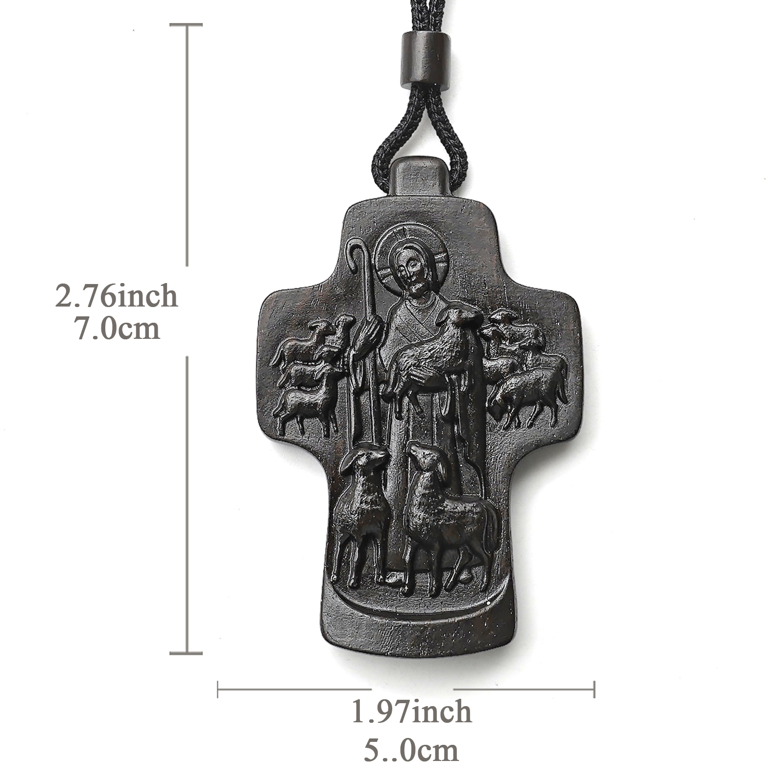 项链十字架-耶稣善牧-黑檀(带绳)-7x5cm送收纳包