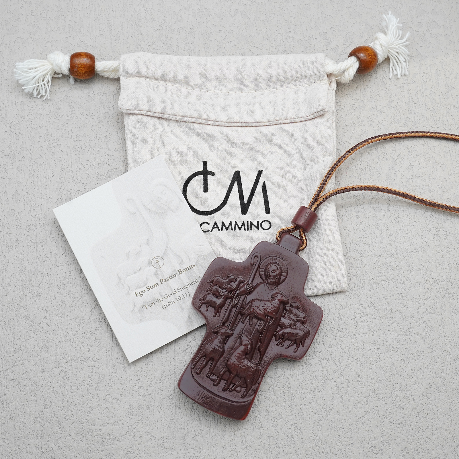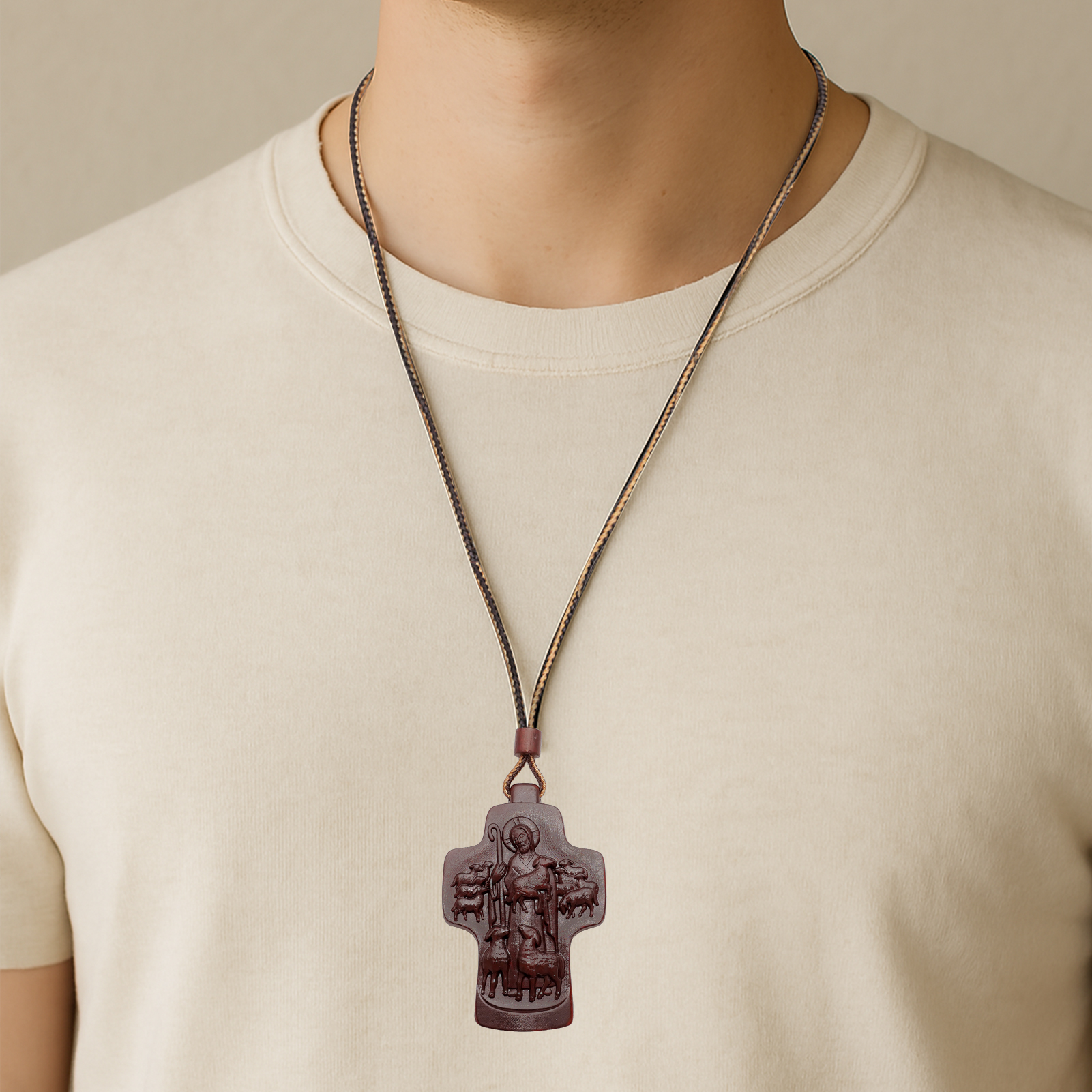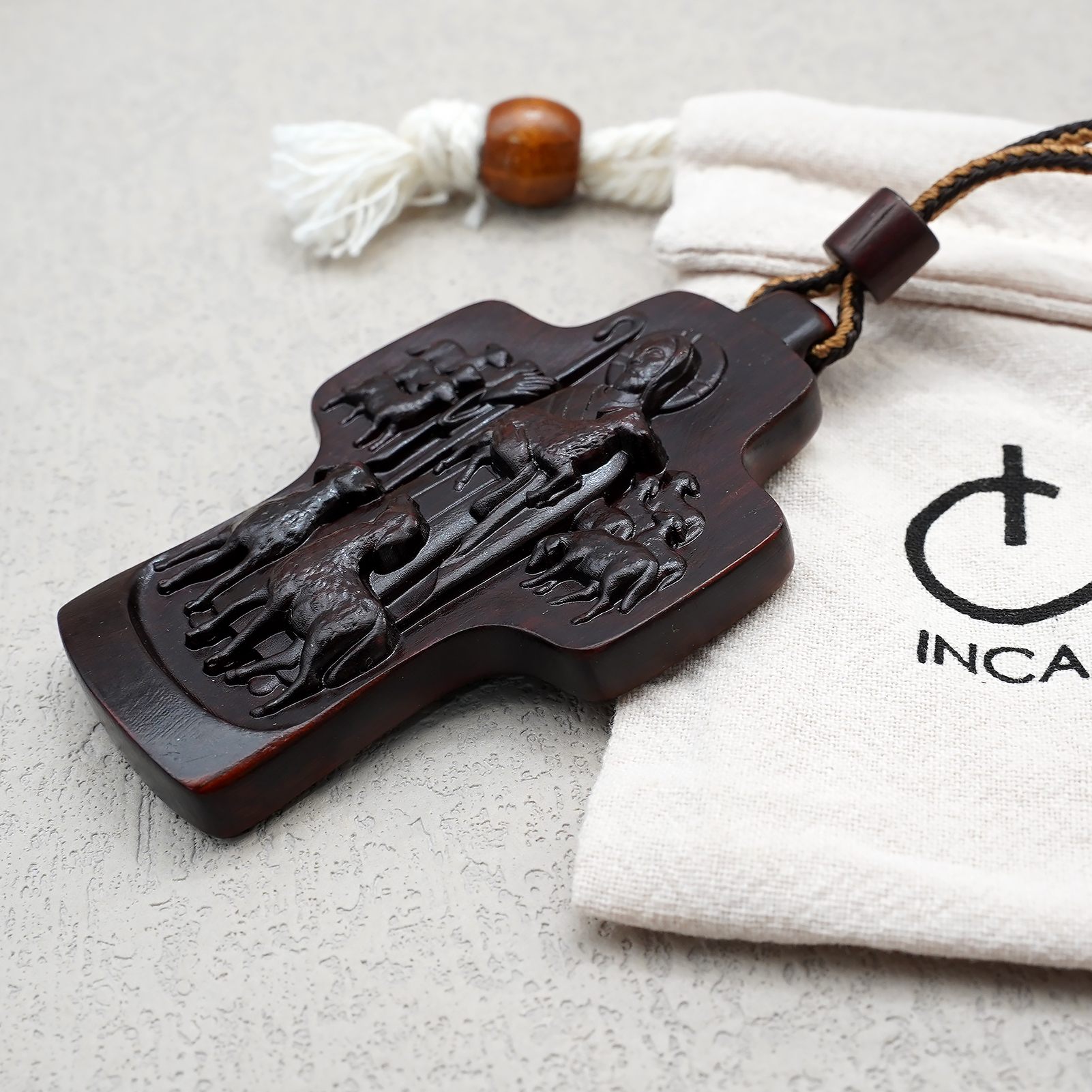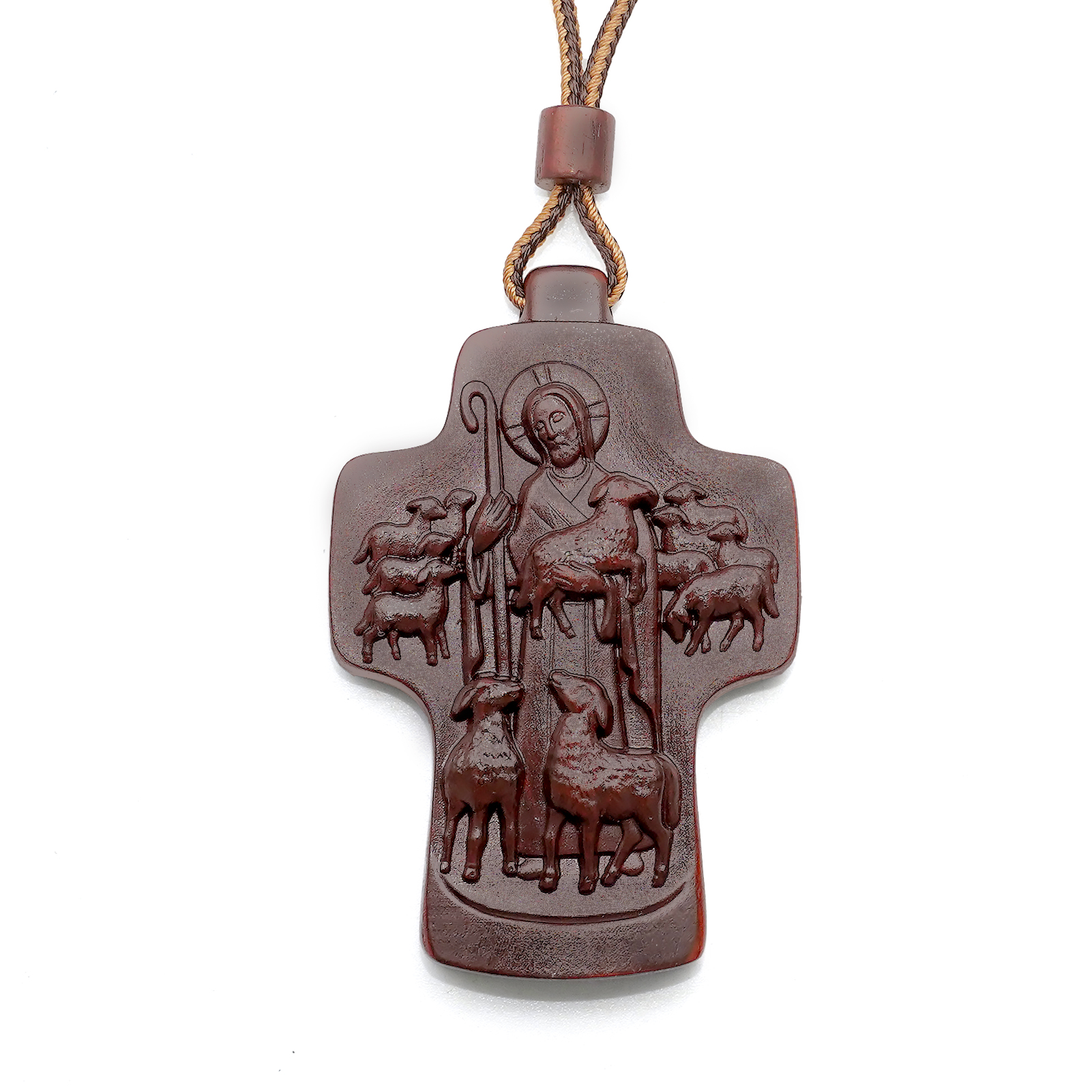 项链十字架-耶稣善牧-紫檀(带绳)-7x5cm送收纳包