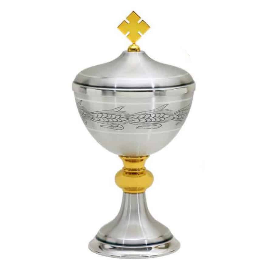 雕刻金属圣体盒,杯直径13厘米,高26厘米
