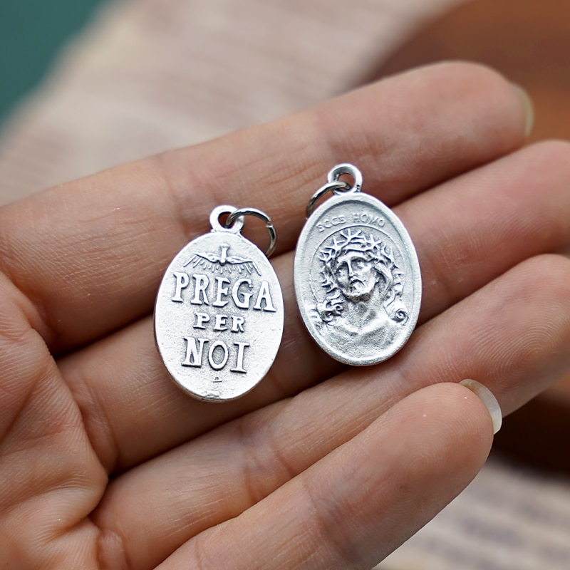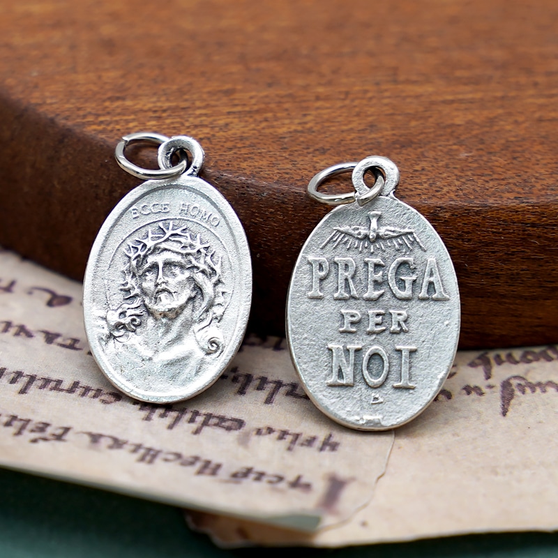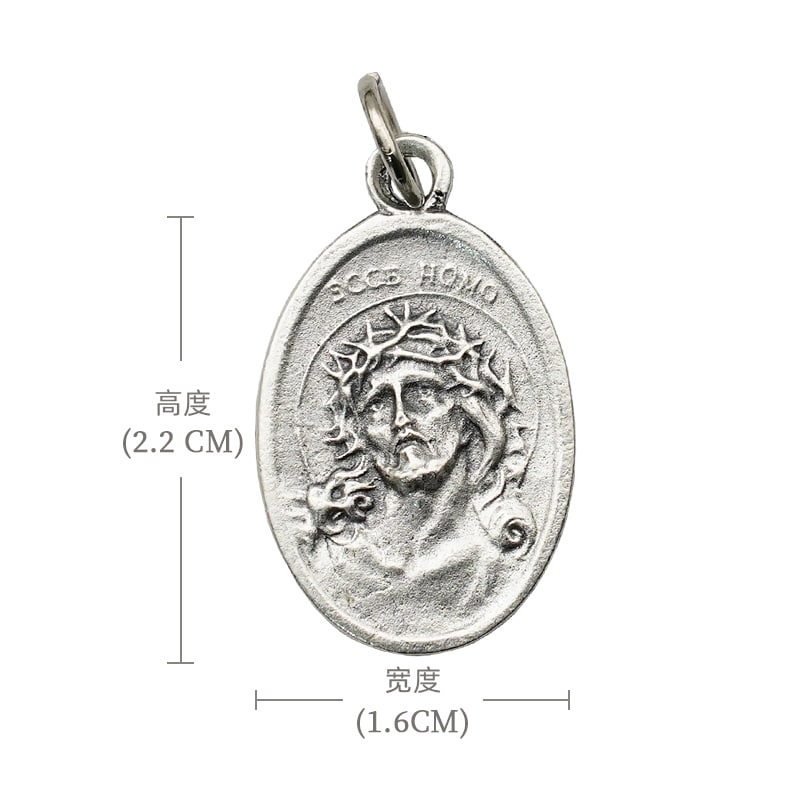 DIY小吊牌-耶稣头像+圣神和字-锌合金-镀银-2.2cm