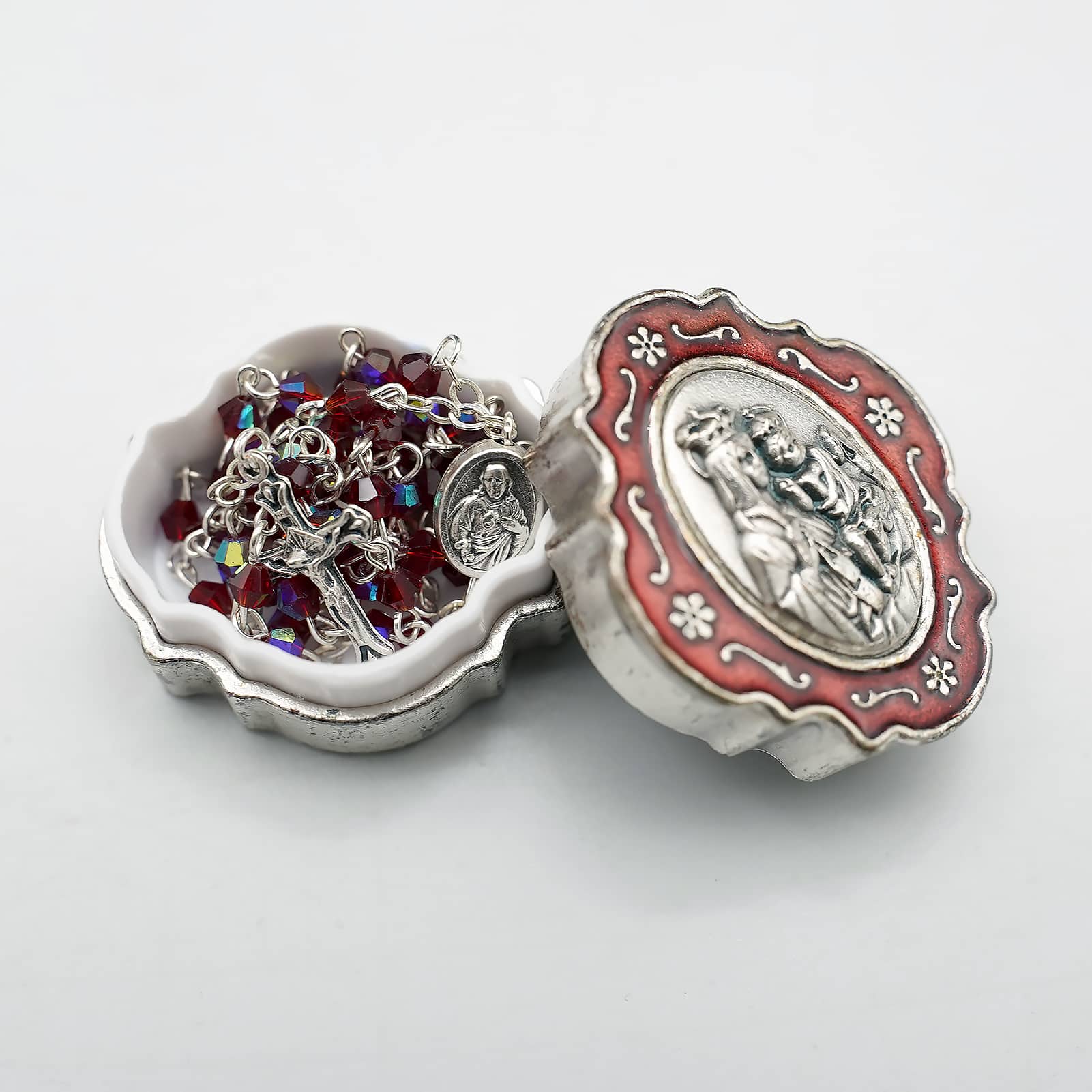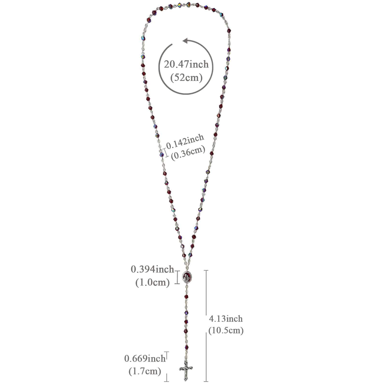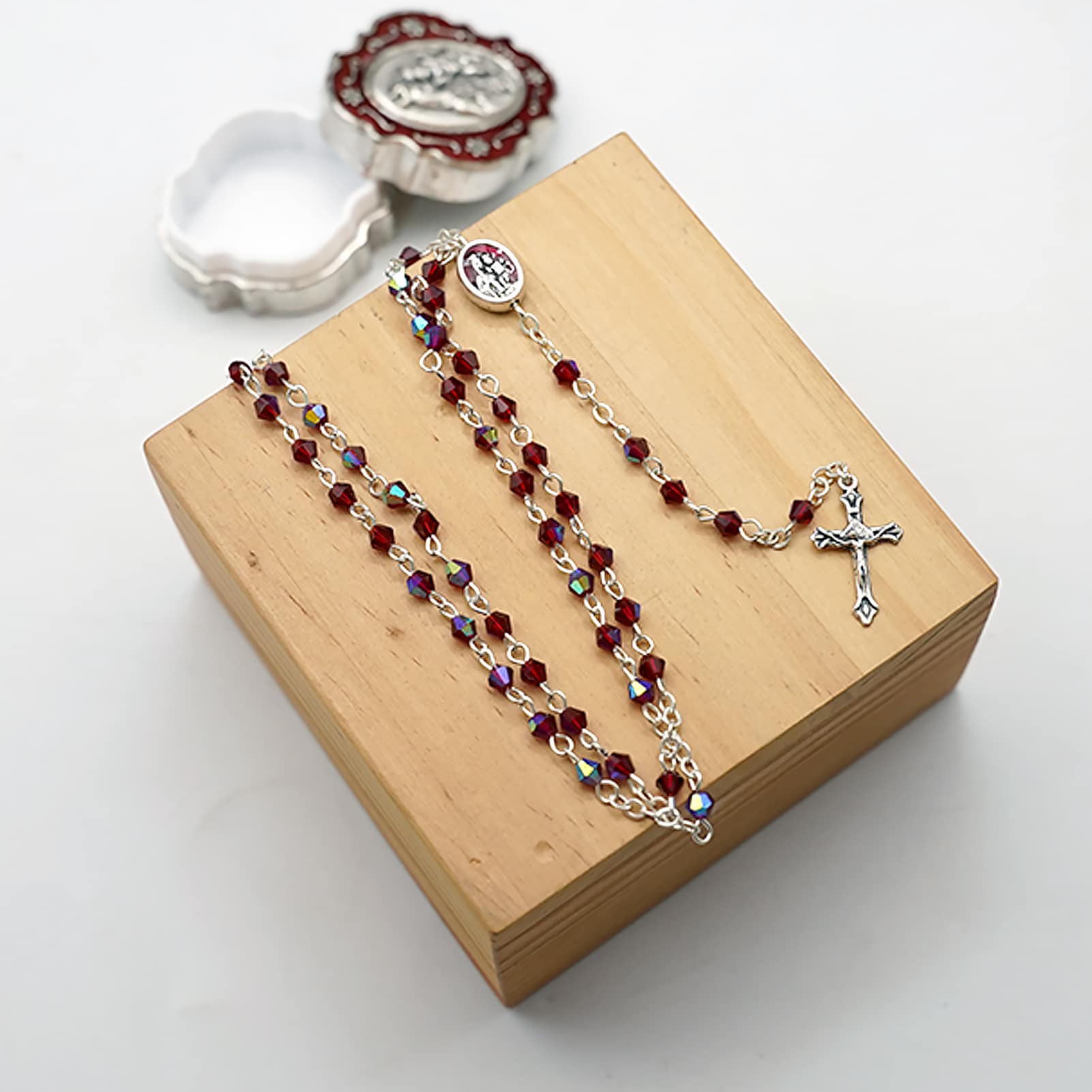 玫瑰念珠-链式-半水晶-红色-菱形-圣衣圣母-珐琅处理+合金